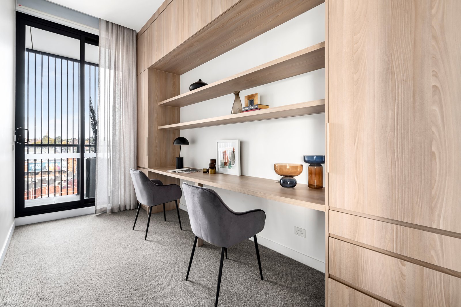 The palatial main bedroom with floor to ceiling glass sliding doors opening onto the terrace, a walk in robe and heavenly en suite bathroom. Two further en suited bedrooms, both with robes, and a fully fitted study provide work from home flexibility or separate retreat area.