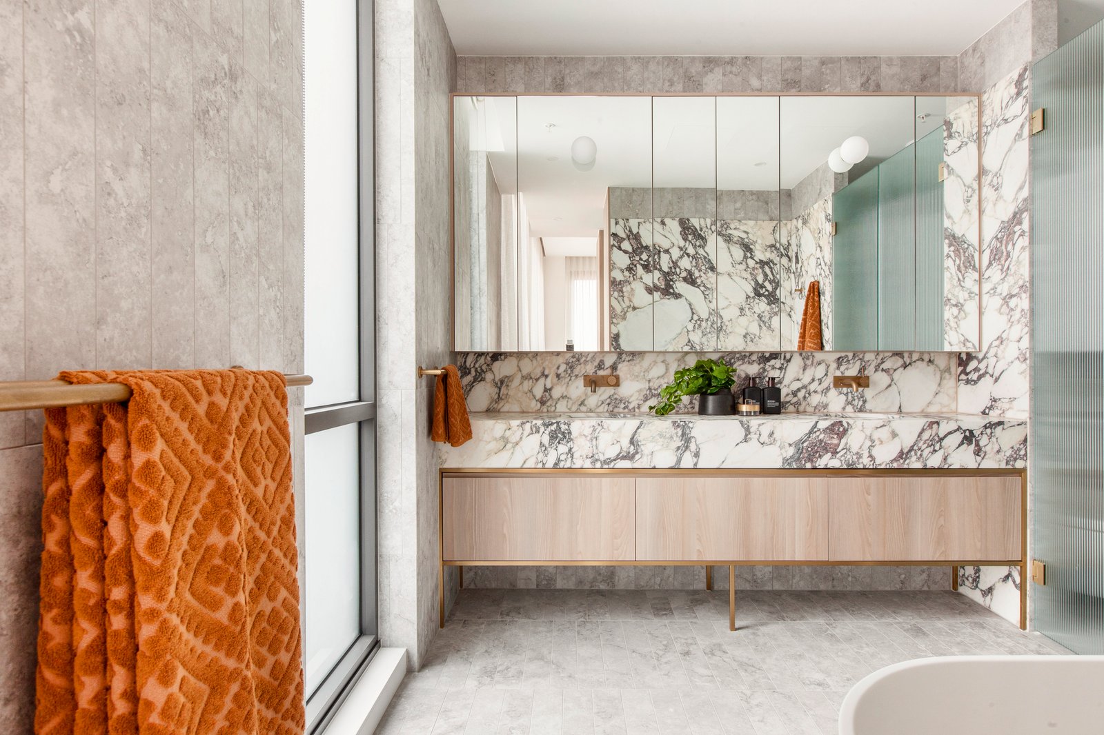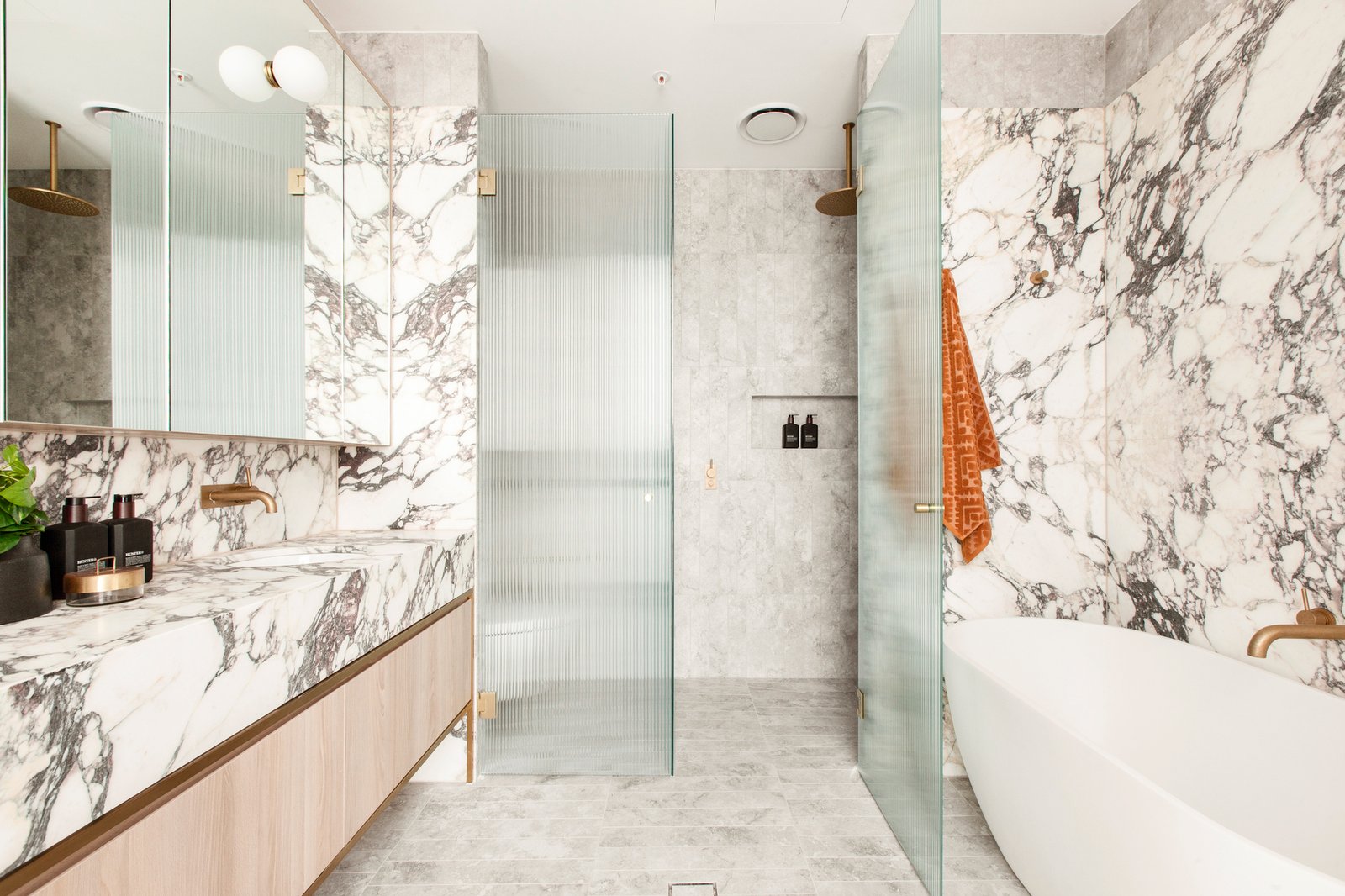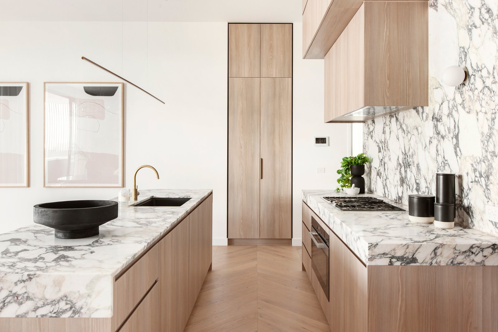 Secure lift access to your own private foyer upon entry to this huge luxurious single level 3-bedroom and study penthouse. Enjoying huge open plan living area with cosy log fire, an adjacent dining area – all with soaring 3.2m ceilings. A designer kitchen with full complement of Miele appliances, marble benchtops and splashback. The butler’s pantry is fully quipped with integrated fridge and freezer, a built-in wine fridge, additional Miele oven and dishwasher.