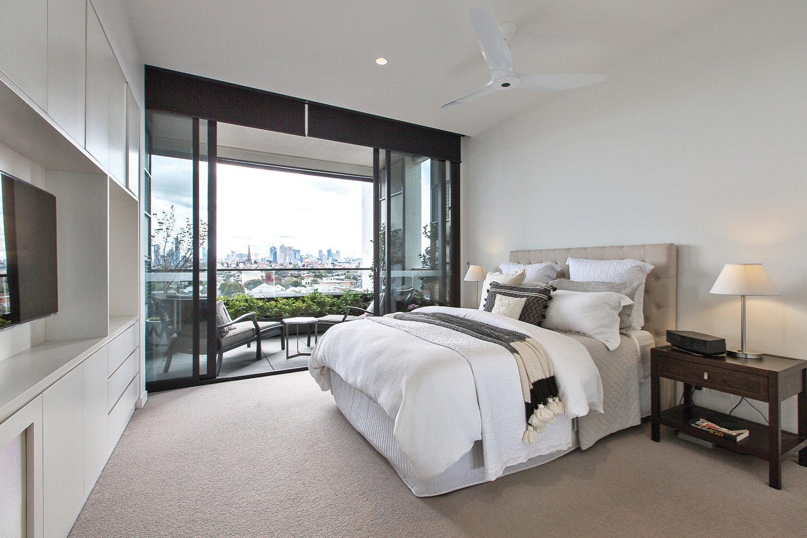 Custom designed with wide oak floors, oak feature wall and premium cabinetry, the light-filled and invitingly spacious living and dining room served by a sleek white stone kitchen boasting Miele appliances all opens to a full width north/west-facing balcony with BBQ offering spectacular city views and a superb venue for al fresco entertaining. The lavish main bedroom including a stunning en-suite with freestanding bath, built in robe and balcony access also commands city views. A second double bedroom with built in robe and study/third bedroom are complemented by a stylish bathroom.