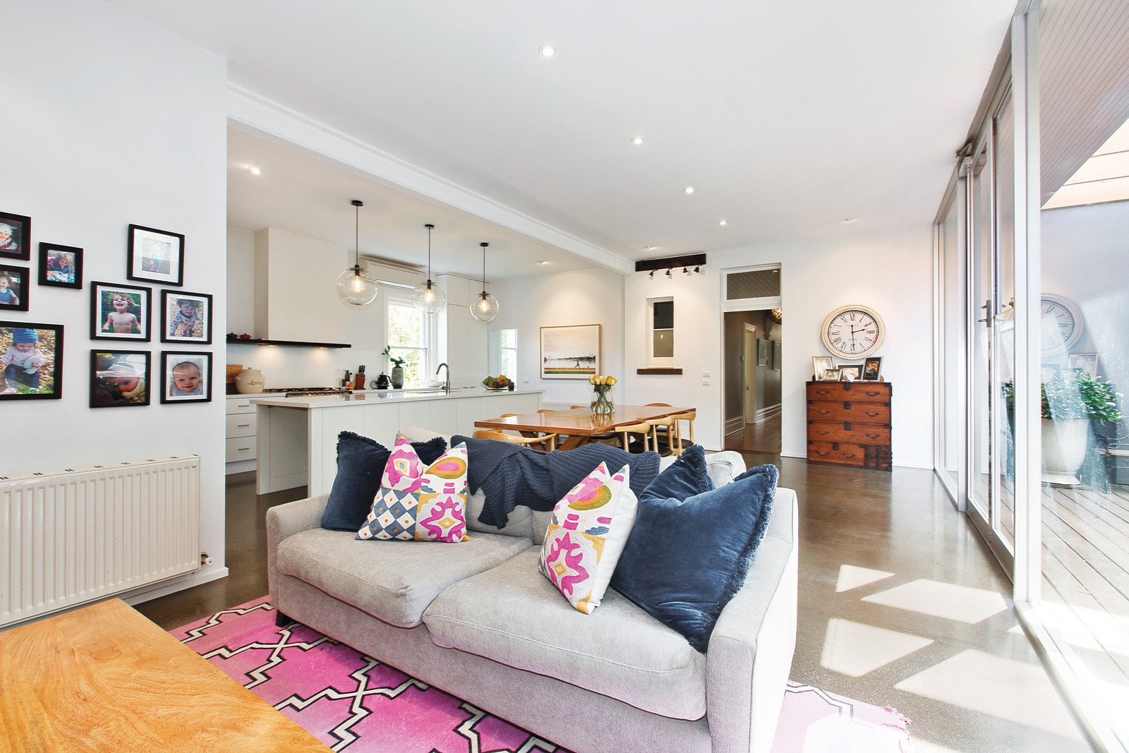 Whilst superb contemporary updating and renovations have given new impetus to the original interior. Which now features a formal sitting room with bay window and a magnificent family domain with polished concrete floors plus a north-facing floor-to-ceiling glass wall opening to a sun-drenched deck - perfect for indoor/outdoor entertaining or relaxing with family and friends; serviced by a stylish quartz kitchen with island bench, two-drawer dishwasher and prestige St George stainless steel stove. Complemented by four bedrooms all with BIRs, main with an annex and room for an ensuite (STCA), or three plus a study and a sleek family bathroom and rear laundry and second family bathroom. Other features include alarm, high ceilings throughout, hydronic heating, R/C air conditioner (family room), quaint original servant bells and off-street parking.