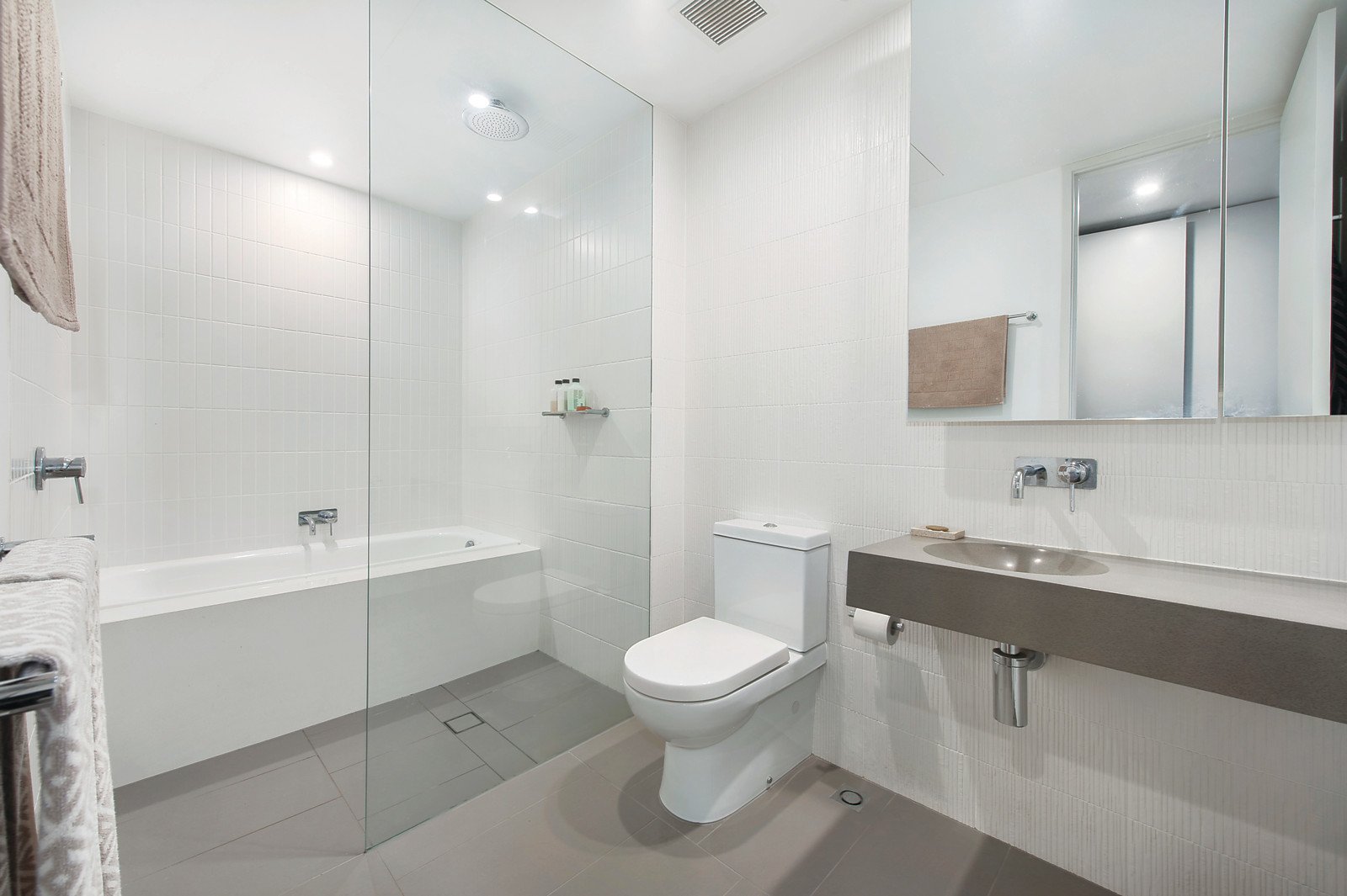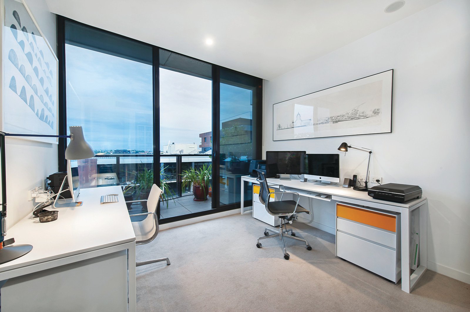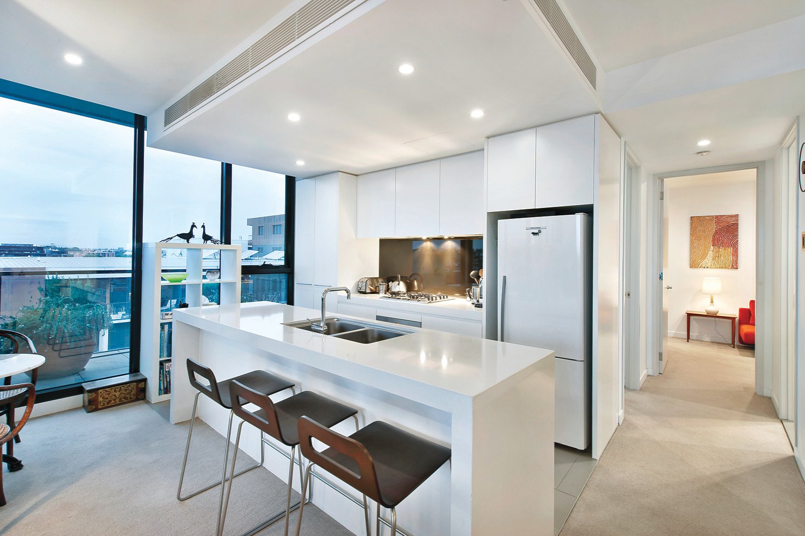 Fully encased in floor to ceiling glass, the expansive open plan living and dining room with a gourmet kitchen boasting white stone benches and Miele appliances open to very broad surrounding north and east facing terraces offering wonderful expansive views. The spacious main bedroom with a designer en-suite and built in robe, a second double bedroom with built in robe and stylish en-suite and third bedroom or retreat with chic bathroom all open to the terrace.