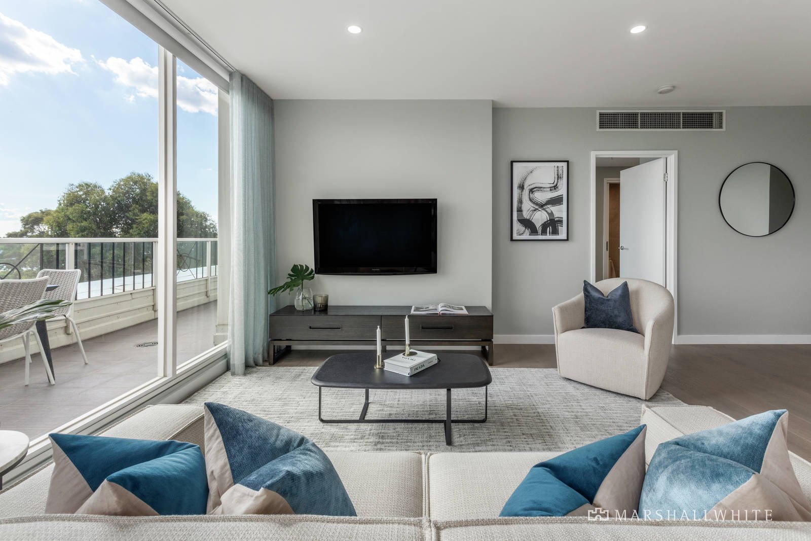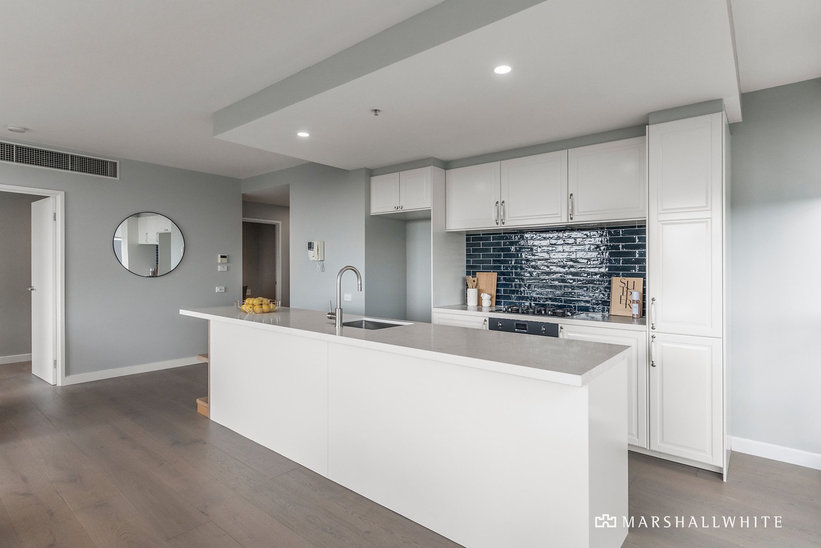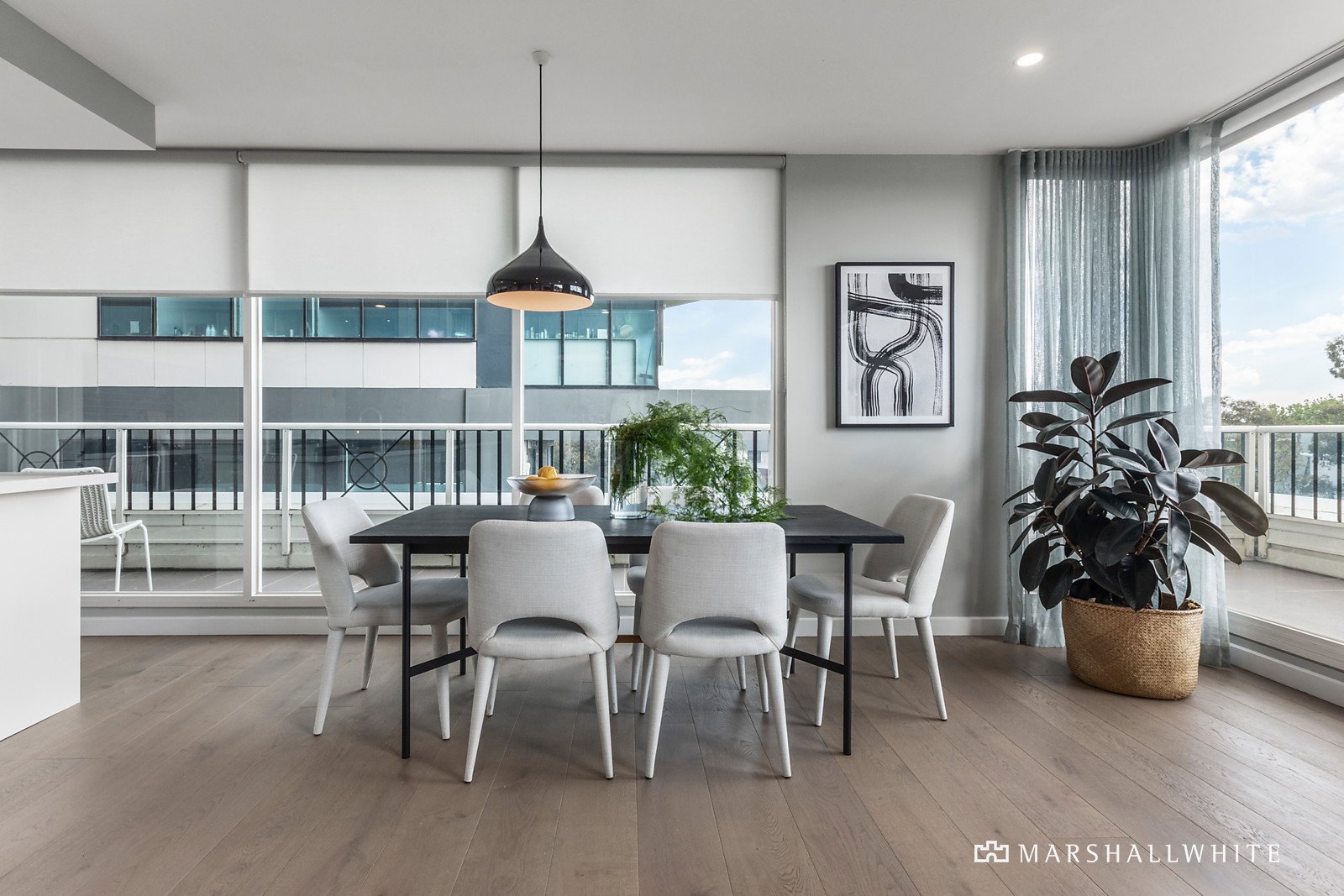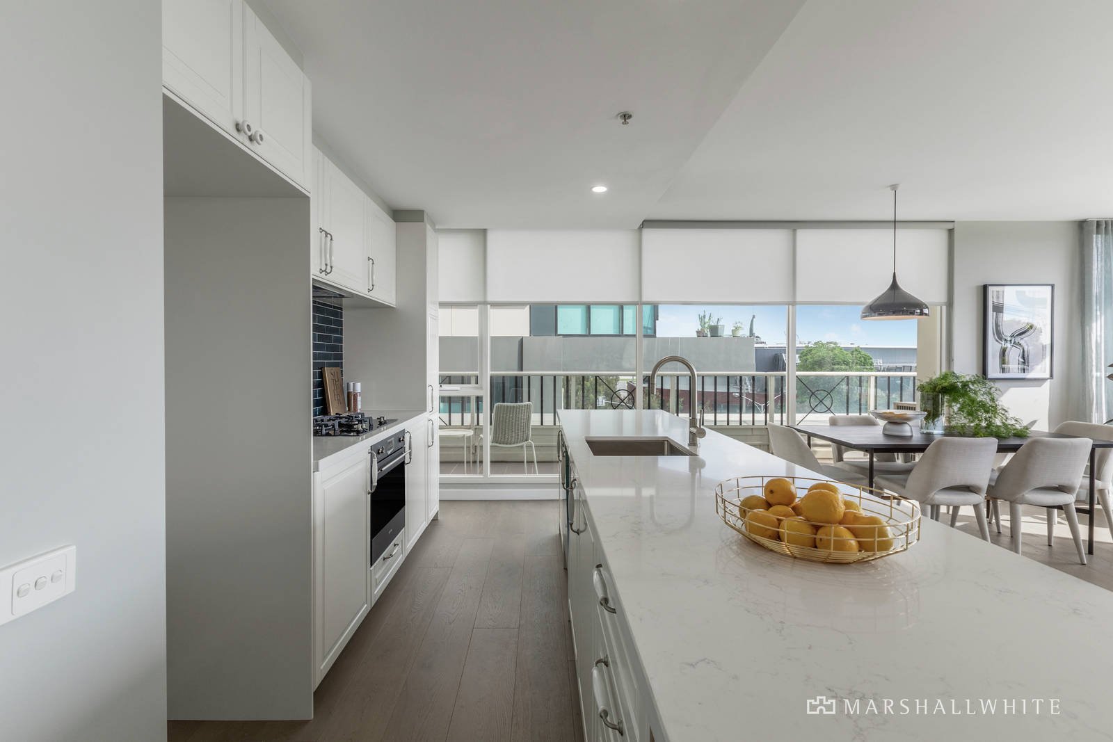 Instantly engaging and with a seamless connection to the balcony through huge windows and sliding doors, the open-plan living area is underpinned by a flawless kitchen in which vast, new, stone kitchen benches are complemented by a suite of superior SMEG appliances. Indeed, with an astounding attention to detail, every element of the renovation has been meticulously planned, extending to themed Italian tiling in the kitchen, the main bathroom and the master ensuite, as well as engineered Oak flooring throughout, a Franke kitchen tap and sink, block-out blinds, sheer curtains and even the custom plating of the ensuite's claw bath to match the tapware.