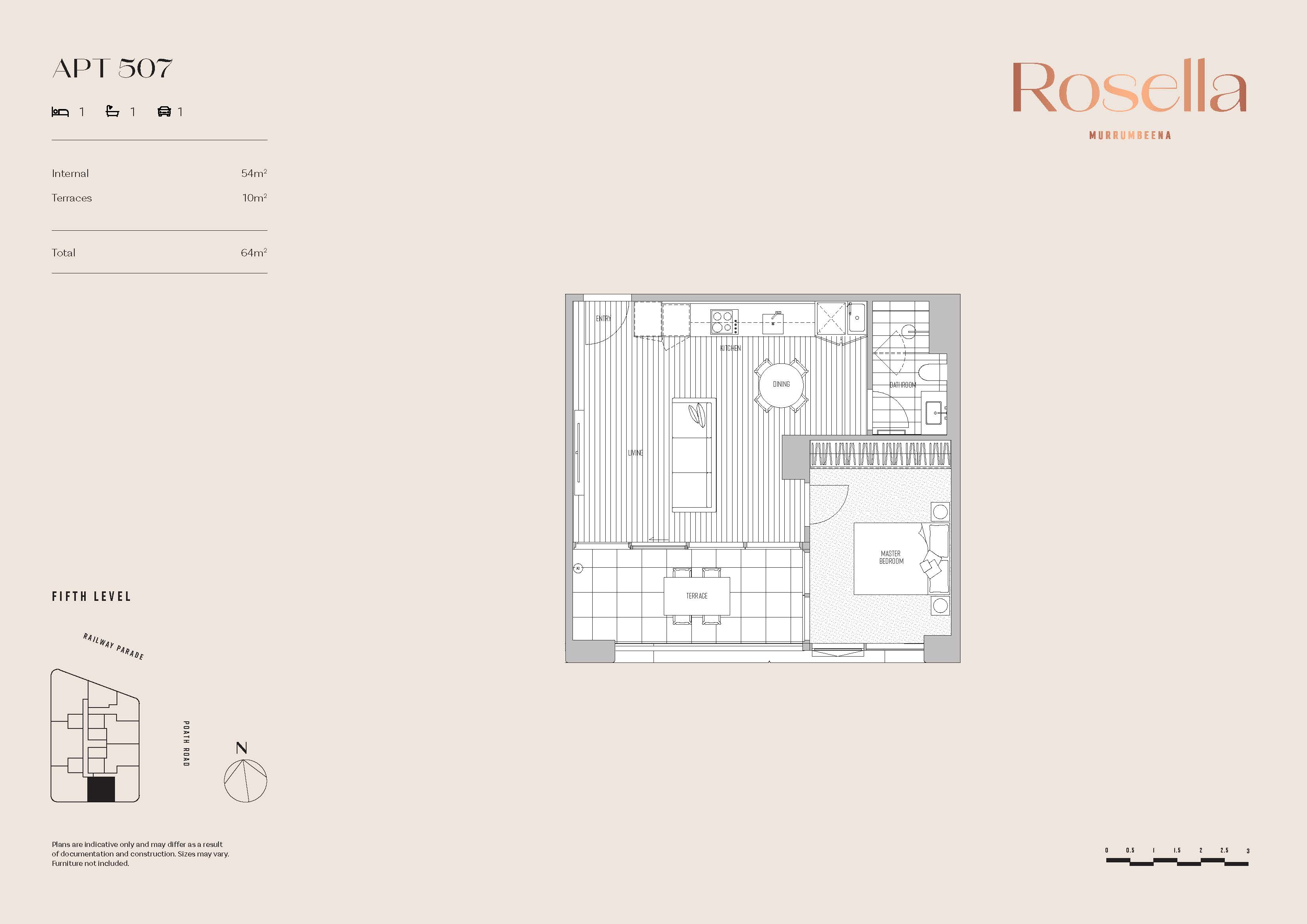 Situated on the fifth floor of a secure, architecturally crafted complex, this south-facing apartment is filled with natural light and features a smart, functional layout with quality finishes throughout.