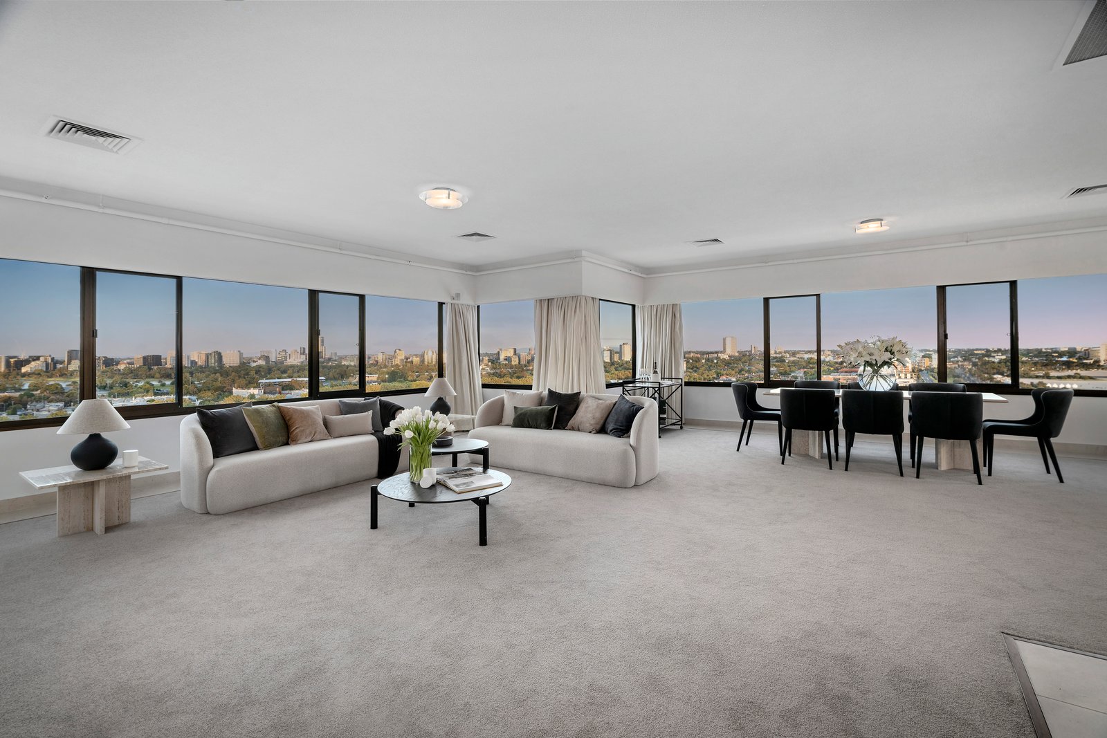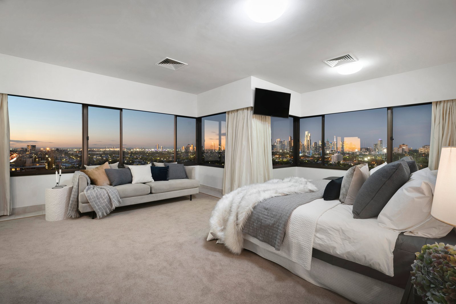 Embrace the extraordinary in this rare and distinguished Hobsons Bay penthouse, where every glance unveils a captivating vista of Melbourne's iconic landmarks, taking in brilliant sun-drenched aspects toward the city to the north, and the bay to the northwest and northeast.