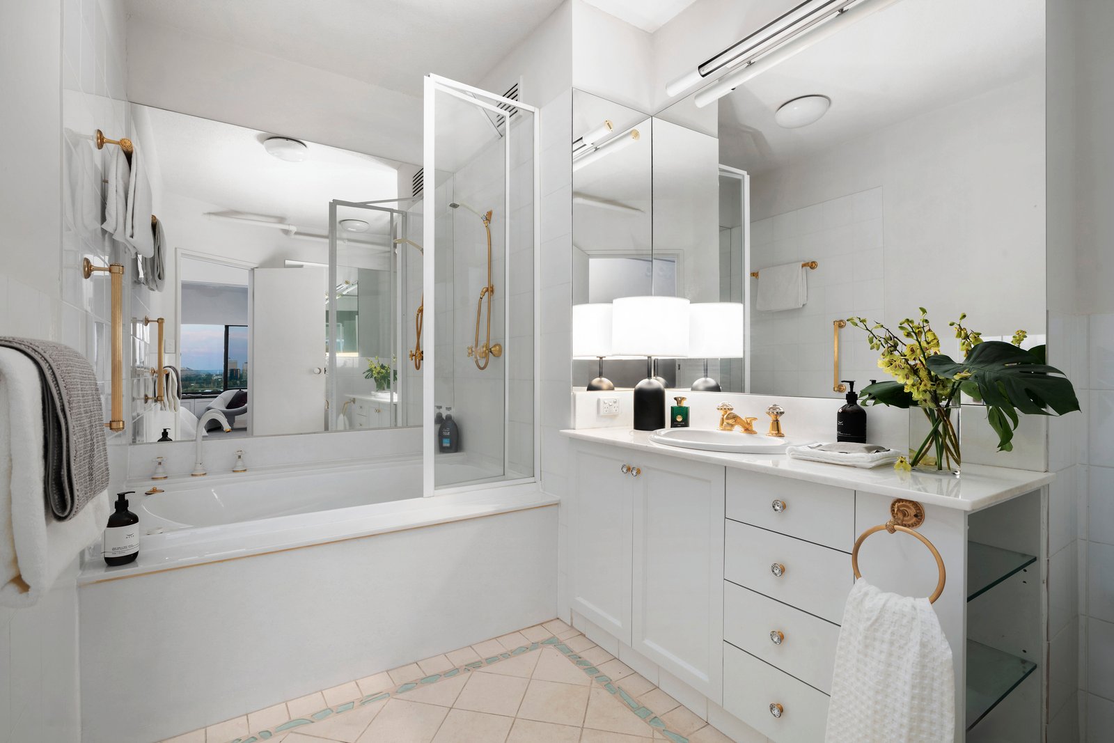 The three bedrooms, including a breathtaking main bedroom wing with an ensuite and robes, capture the essence of sophistication, showcasing uninterrupted outlooks. Imagine waking up to breathtaking views of the glistening waters and cityscape every day and appreciating the buildings resort amenities, with an in ground swimming pool and community outdoor entertaining and BBQ area.