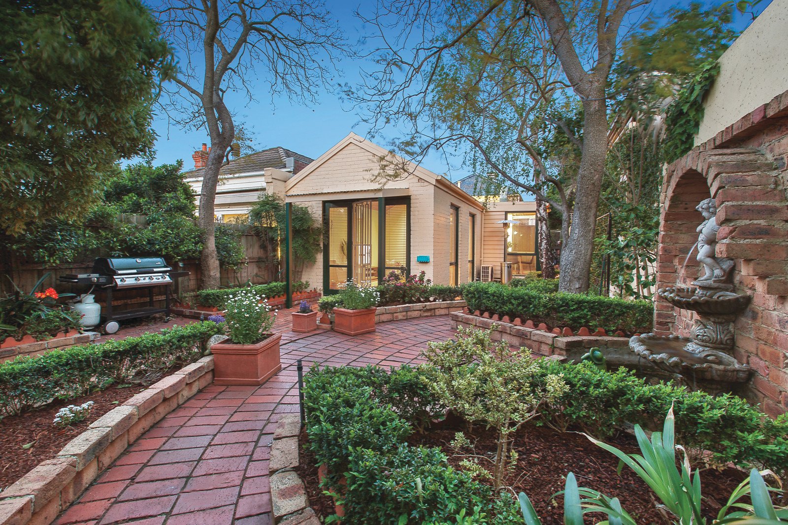 The enduring period charm and unexpectedly spacious indoor and outdoor dimensions of this captivating freestanding block-fronted Victorian residence with 2 car-spaces create an appealing oasis to enjoy now while also providing enormous scope to extend and further update (STCA). Baltic pine floors flow through the traditional arched hallway to two spacious bedrooms with high ceilings and open fireplaces and a smart bathroom. An abundance of living spaces comprises an inviting sitting room, well appointed timber kitchen with adjacent light-filled dining area and a generous living room beneath timber lined cathedral ceilings. The living areas open to a deep northwest facing leafy garden with water feature, a glorious private sanctuary for entertaining or relaxing. Desirably situated close to Malvern Gardens, schools and Glenferrie Rd shops, it also includes irrigation, Euro-laundry and 2 off street car-spaces.