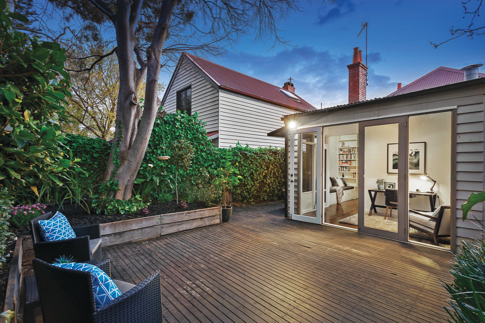 The L-shaped entrance hall is characterised by baltic pine floors and high ceilings, and leads to two gorgeous double bedrooms with built in robes, a stylish bathroom, and generous living room with open fireplace. The timber floors extend through an inviting dining area, superbly appointed modern kitchen, and a retreat or study opening to a northeast deck set against a lush, leafy backdrop.