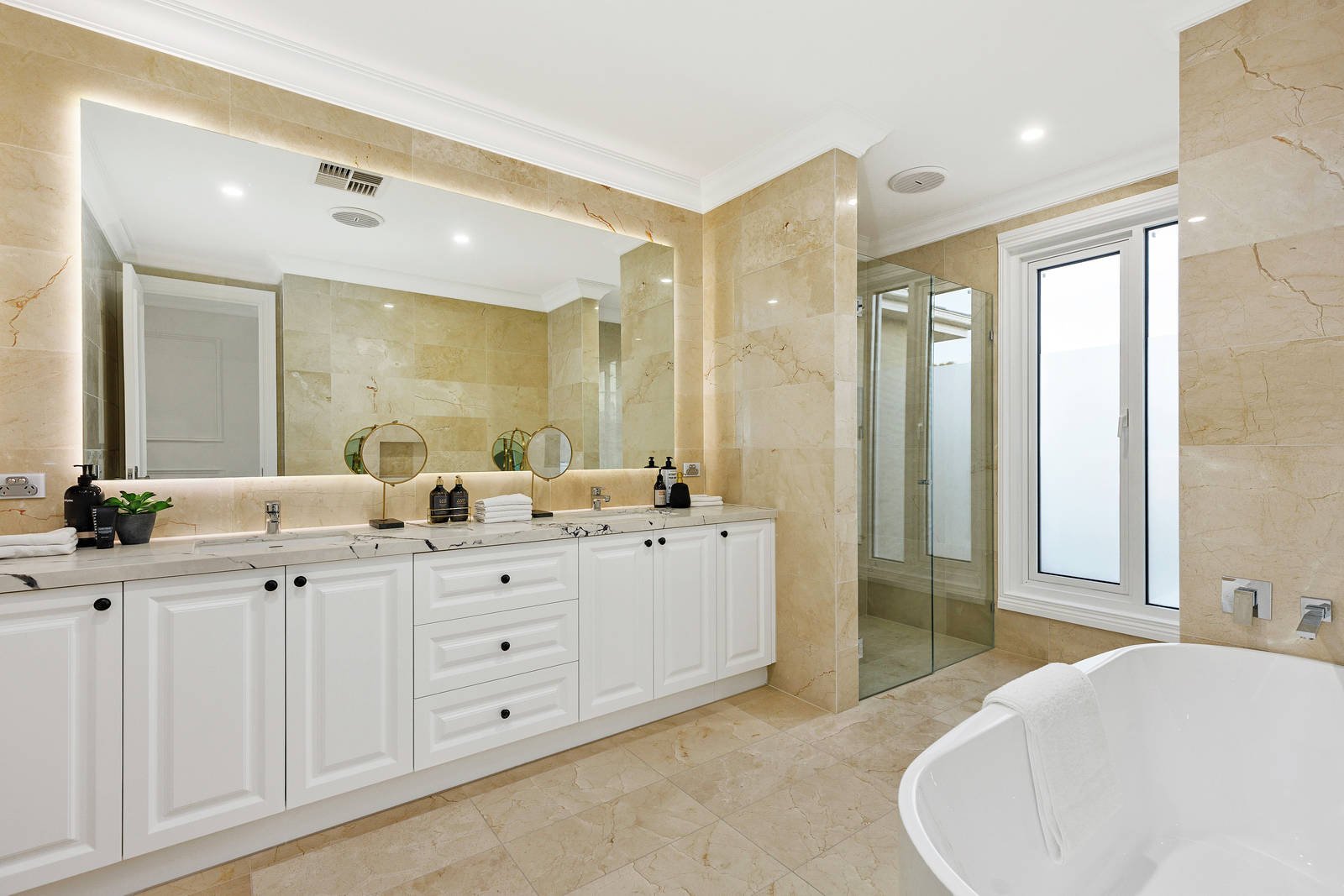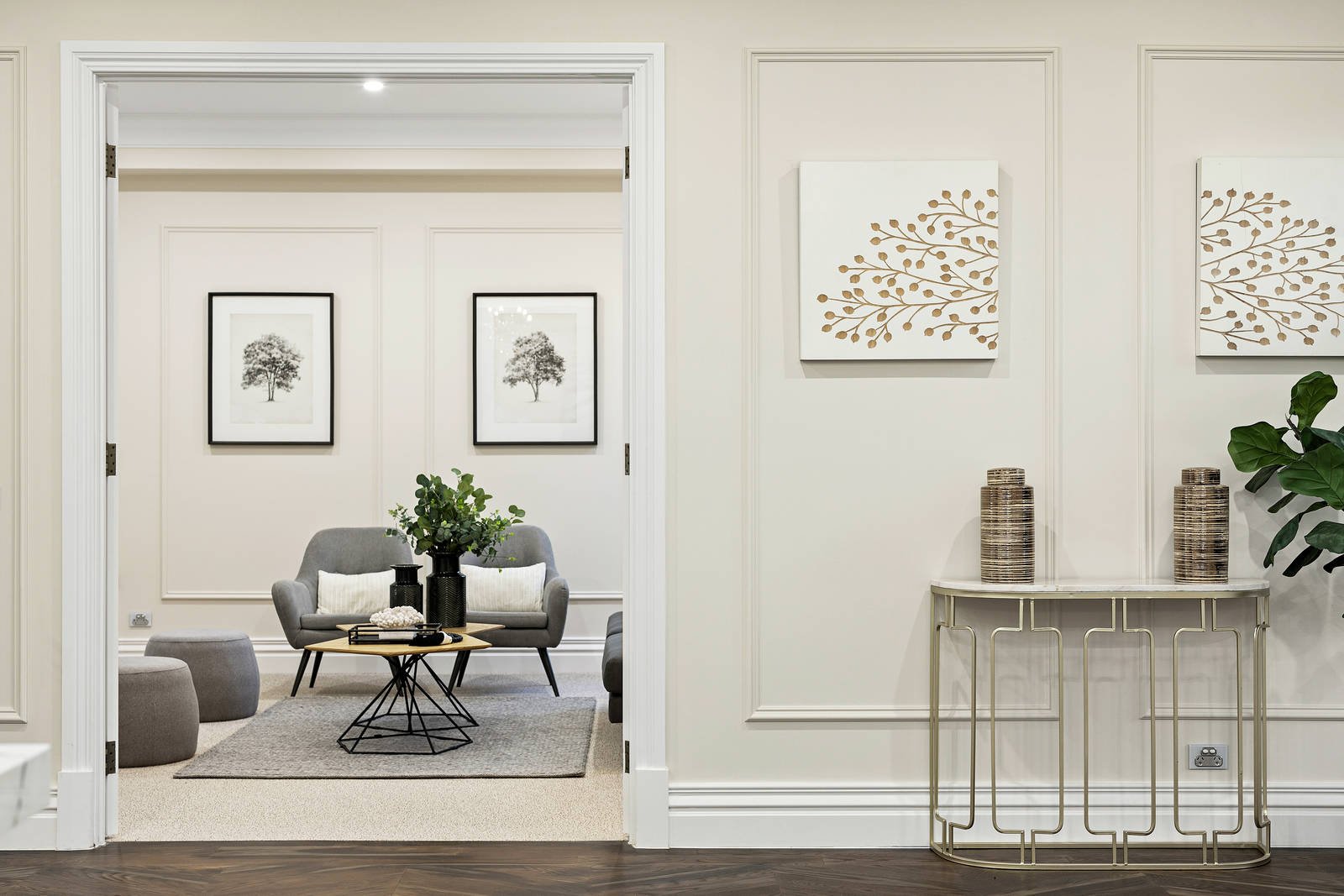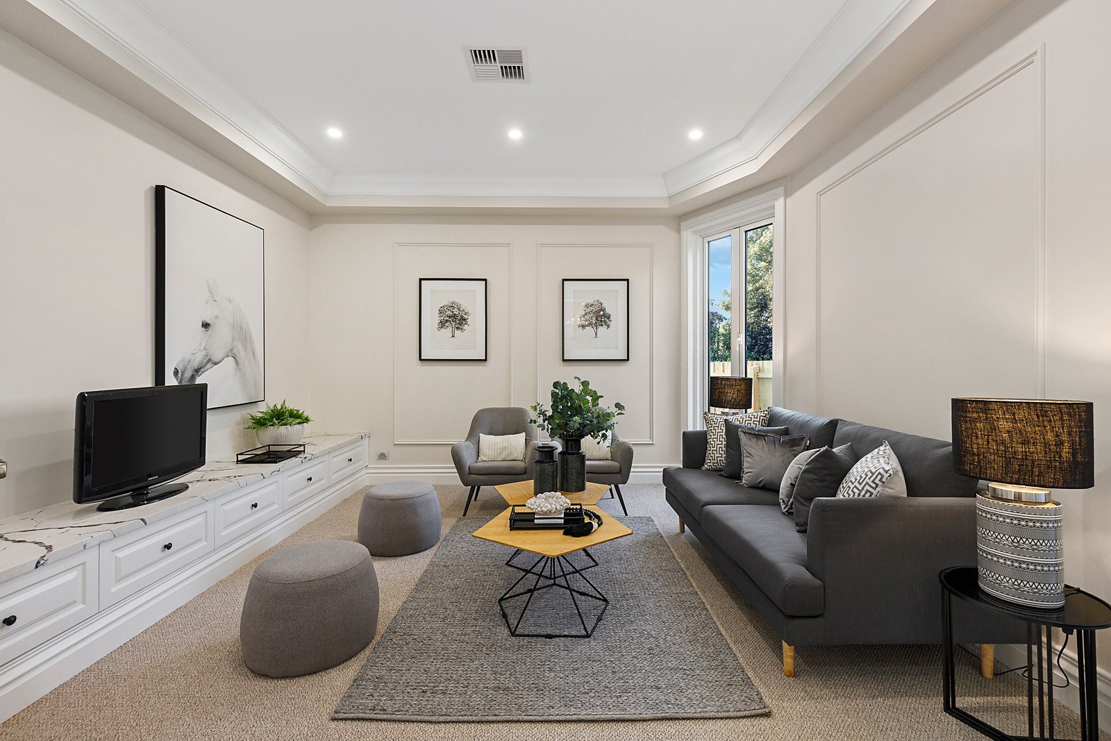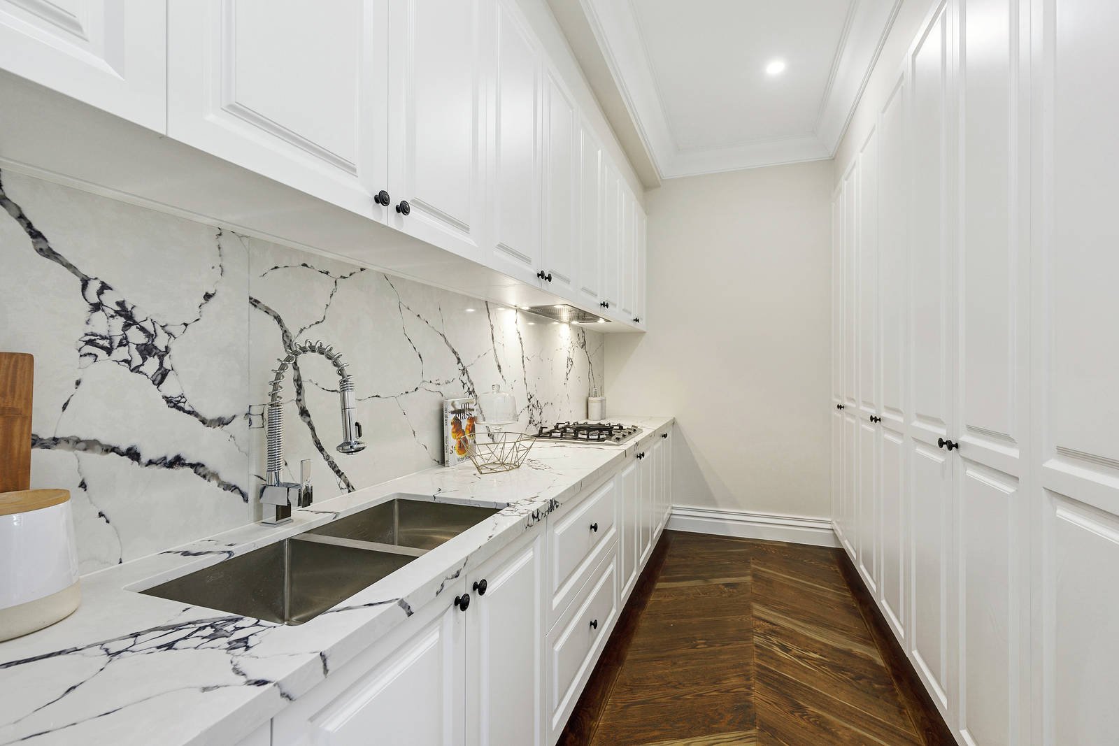 Richly hued oak parquetry floors and high recessed ceilings create an impactful first impression in the welcoming reception hall that flows through to an exquisite sitting room warmed by a gas fire and a fabulous media room. Spectacular in scale, the open plan living and dining area includes a state of the art premium kitchen appointed with stone benches, Miele appliances and a full second kitchen or butler's pantry. Bi-fold doors connect the living area to a large covered al fresco entertaining terrace with outdoor BBQ kitchen and private northeast garden. A downstairs bedroom with walk in robe and en suite is ideal for guests while upstairs there are three additional bedrooms with en suites and walk in robes, a large retreat with kitchenette and a palatial main bedroom with sumptuous en suite and deluxe dressing room.