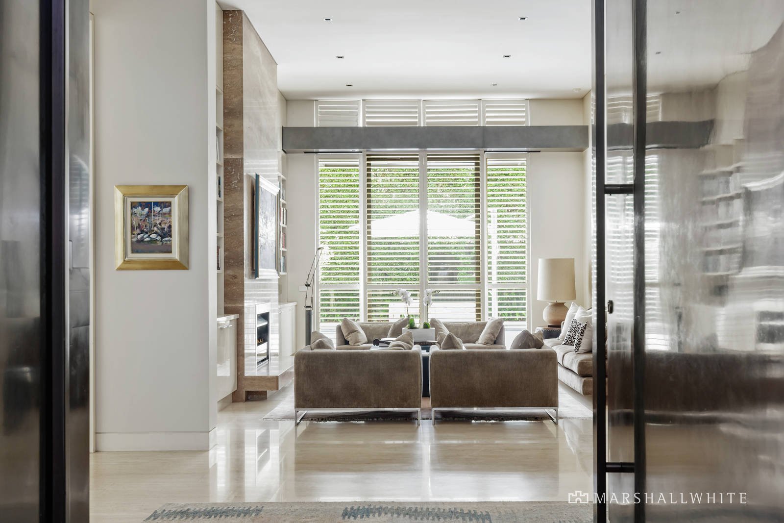 Seamlessly, an open-plan living area and a more ambient lounge are each connected to paved poolside living, while a kitchen comprising of feature stone surfaces, enviable Gaggenau appliances and a vast Butler's Pantry conspire to inspire all your culinary aspirations. Strategically organised to balance open connectedness with the demarcation of zones, the living zones delicately unfold to create almost gallery-like spaces of instant impact and enduring intimacy.