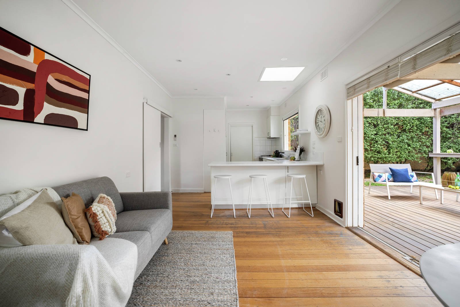 Open and airy with polished hardwood flooring, the home flows easily to an undercover, al fresco entertainers' deck that overlooks the north-facing joy of a deep backyard where established trees provide an appealing backdrop. The kitchen / dining is a well-designed space with stainless steel appliances, all of which is separate to a big and bright lounge room, whilst the bedrooms are each genuinely large doubles with built-in robes - the master with its own private ensuite. Also features a central bathroom with heated towel rail, a laundry, garage parking and driveway parking for an additional three vehicles.