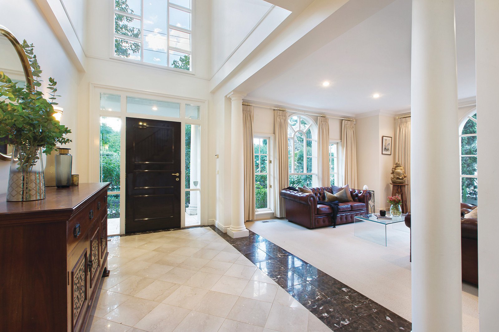 The exceptional proportions and finishes are immediately evidenced by the imposing double height reception hall, graciously proportioned formal sitting and dining room and refined study. The superbly appointed gourmet kitchen with marble benches, light-filled living and dining room and adjacent spacious media room open to the deep private landscaped northeast garden. An elegantly curved staircase leads up to a beautiful main bedroom with walk in robe and opulent en-suite with spa-bath, three double bedrooms with built in robe, a large retreat and stylish marble bathroom.