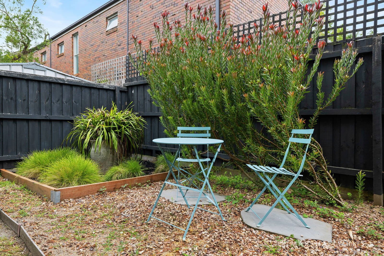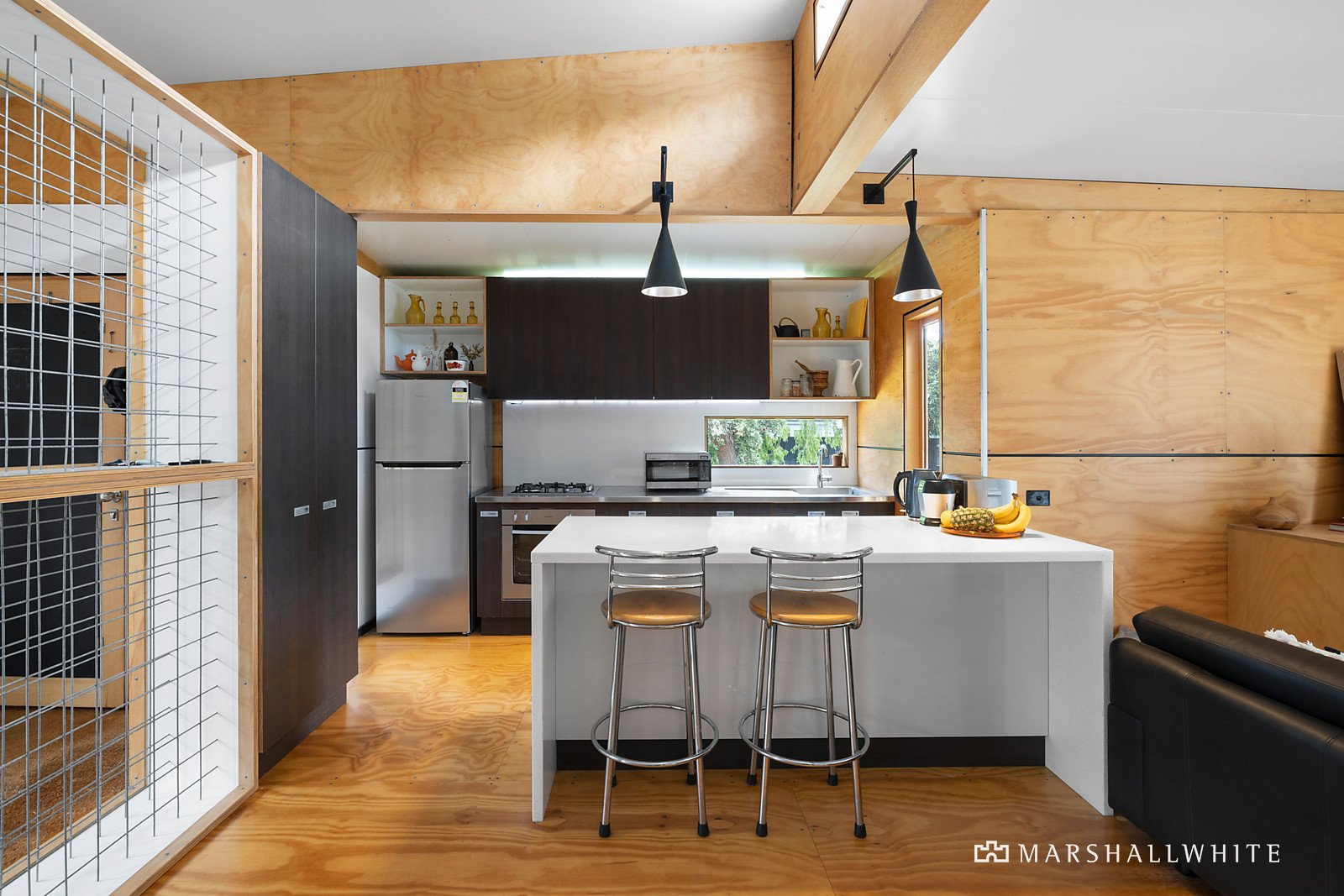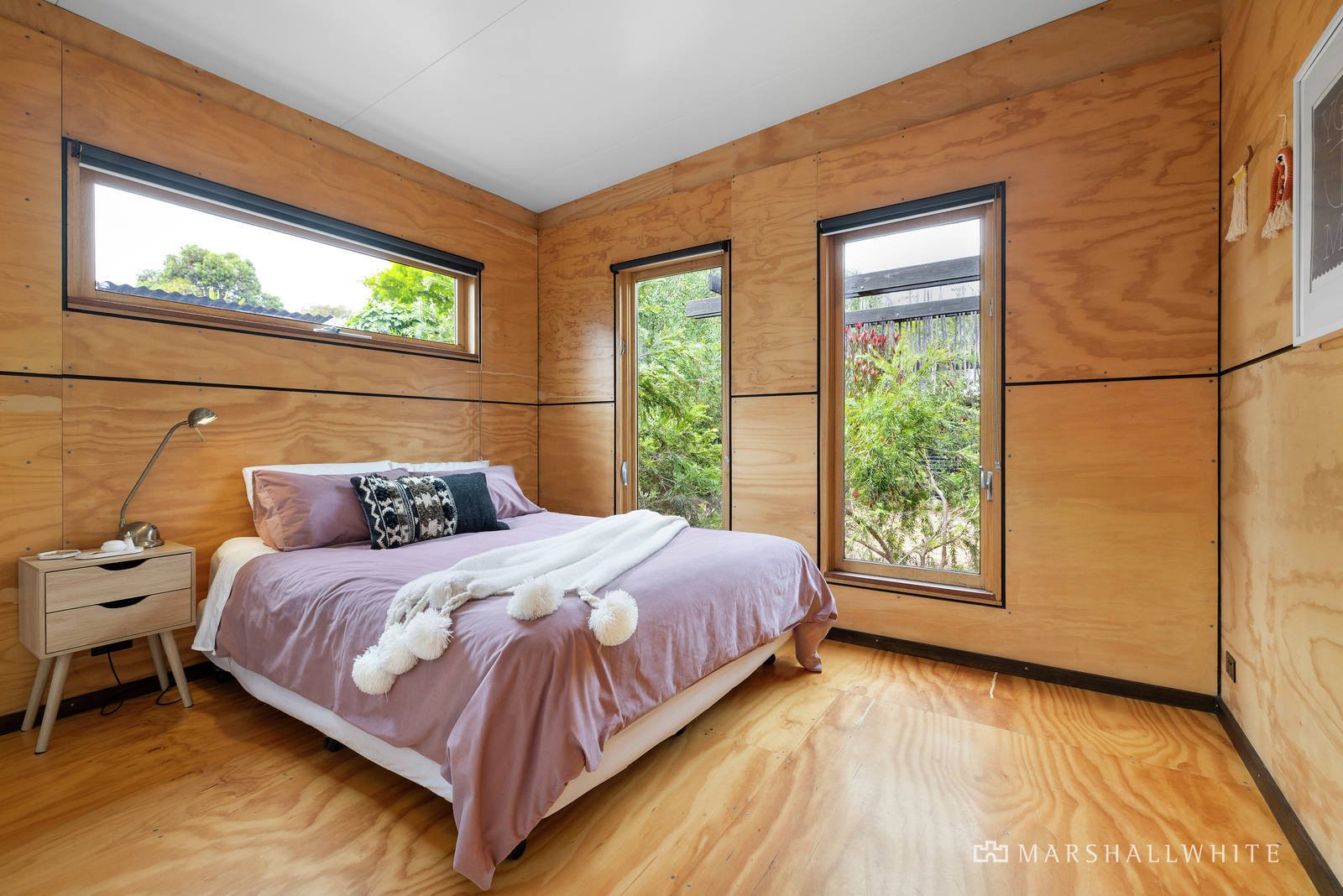 As presented, the current abode is a versatile home that is finished with stretches of timber and black accents to give a certain Zen-like tranquility very in keeping with the botanical surrounds. Featuring a generous living and dining zone with raked ceiling and north-facing clerestory windows, the accommodation also provides a smart kitchen with integrated Siemens dishwasher, ample soft-close cabinetry and ambient LED lighting. Out from the living room, a sundrenched deck looks across the glorious garden, while zoned behind a Japanese-style divider are the two double bedrooms (BIRs) and a contemporary bathroom/laundry. Split system heating/cooling, a gas fireplace and garden shed are also offered along with a remote gate and intercom.