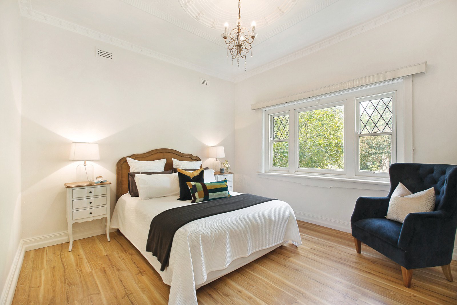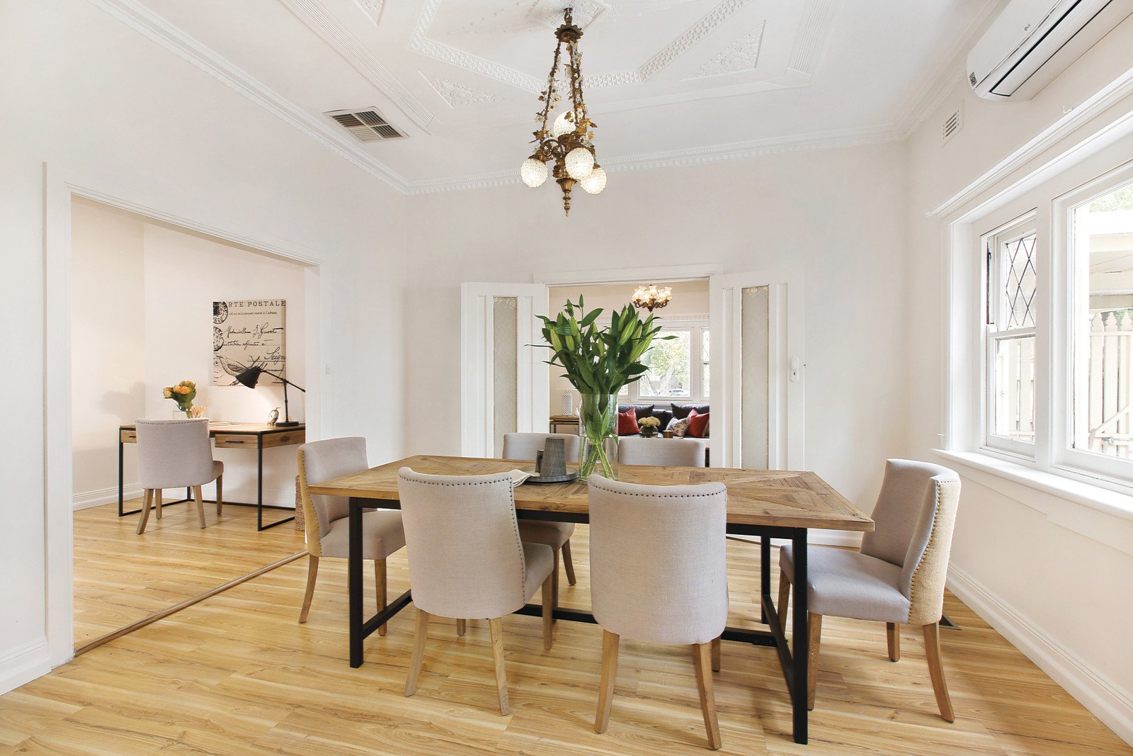 Ornate ceilings and leadlight windows define the period allure in the gracious living room and beautiful dining room. The main bedroom with en-suite is accompanied by two additional double bedrooms and a stylish bathroom. The bright well appointed kitchen and retreat with study nook lead out to the deep west-facing private garden with an expansive entertaining deck.