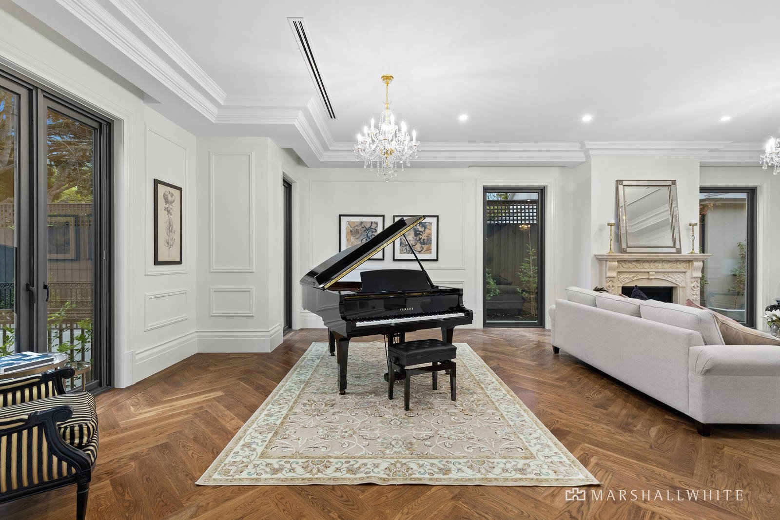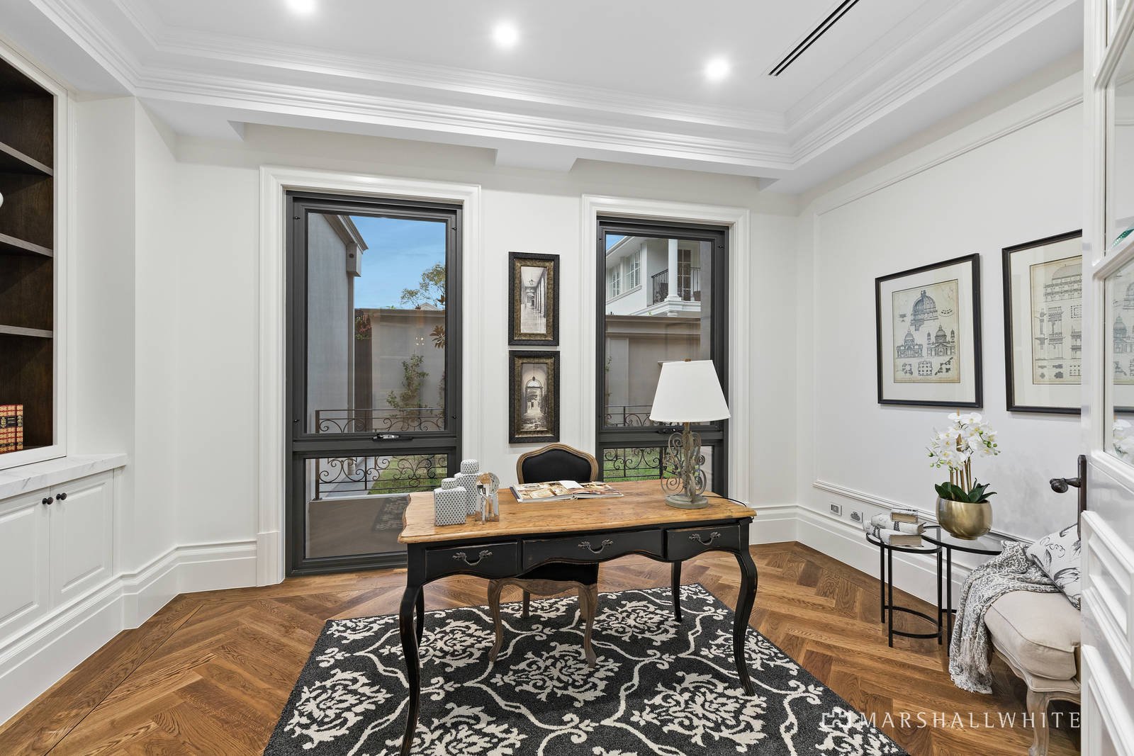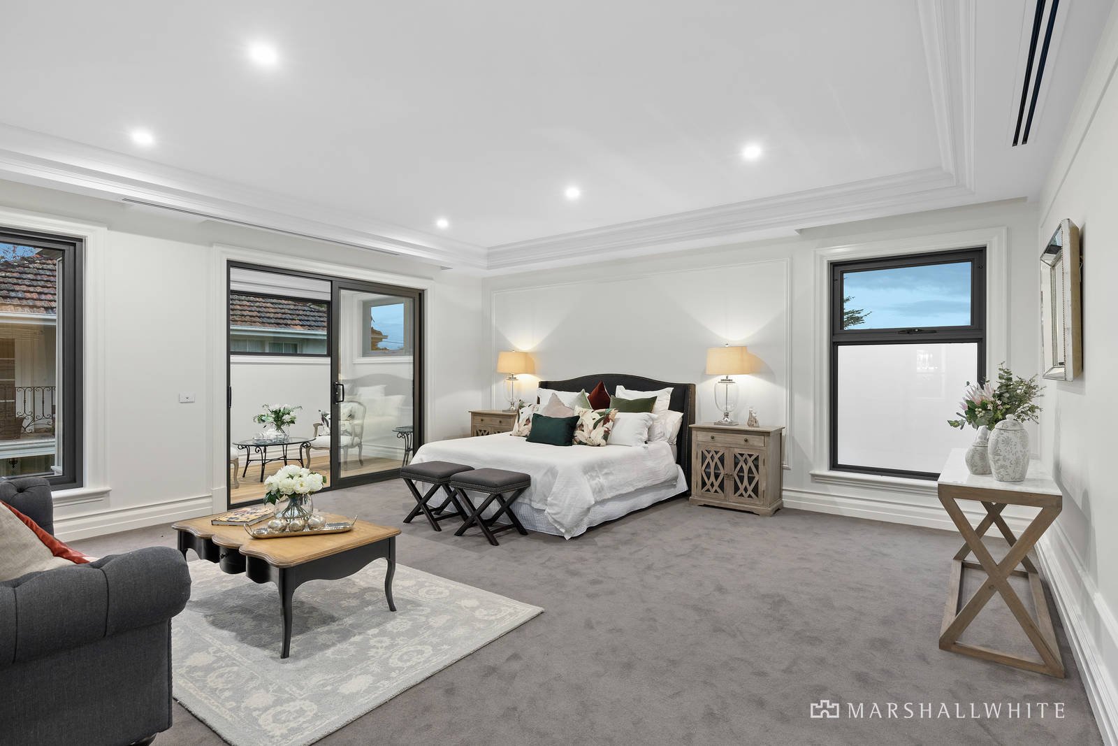 The master bedroom is a private domain with its own sitting room, dressing room and hotel-standard ensuite, whilst another trio of upstairs bedrooms are each serviced by ensuites and walk-through built-in robes. Centrally heated and air conditioned, the home is fully secure with keyless coded entry, intercom entry, a security alarm and CCTV surveillance.