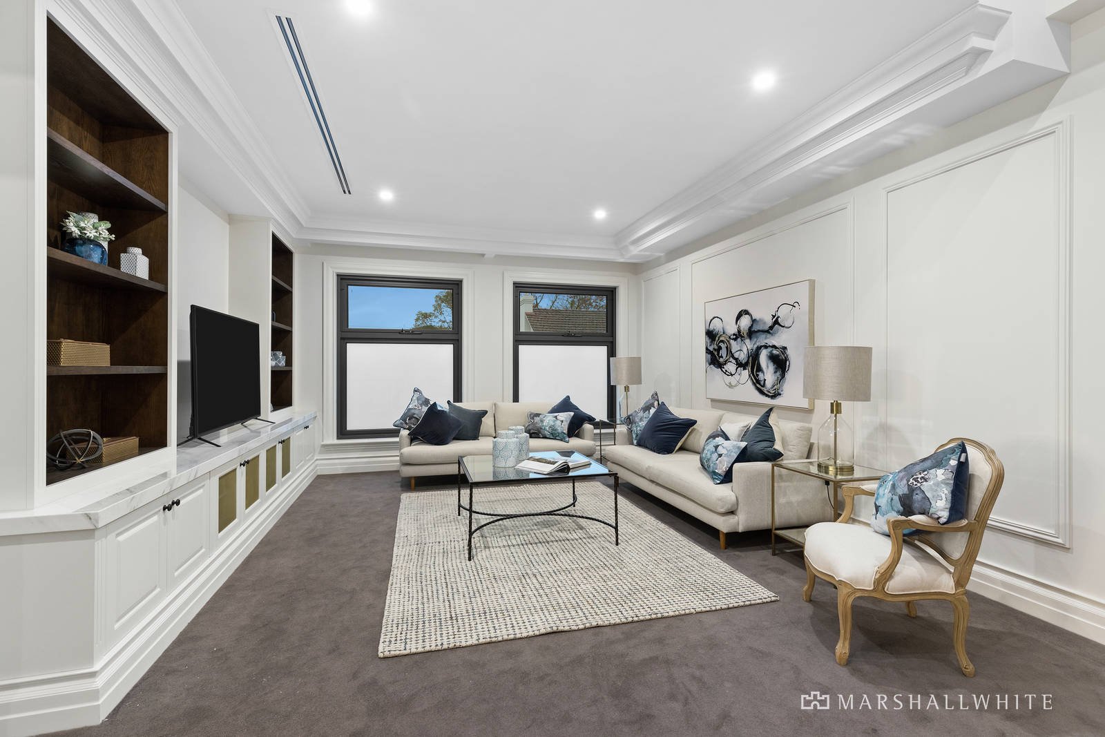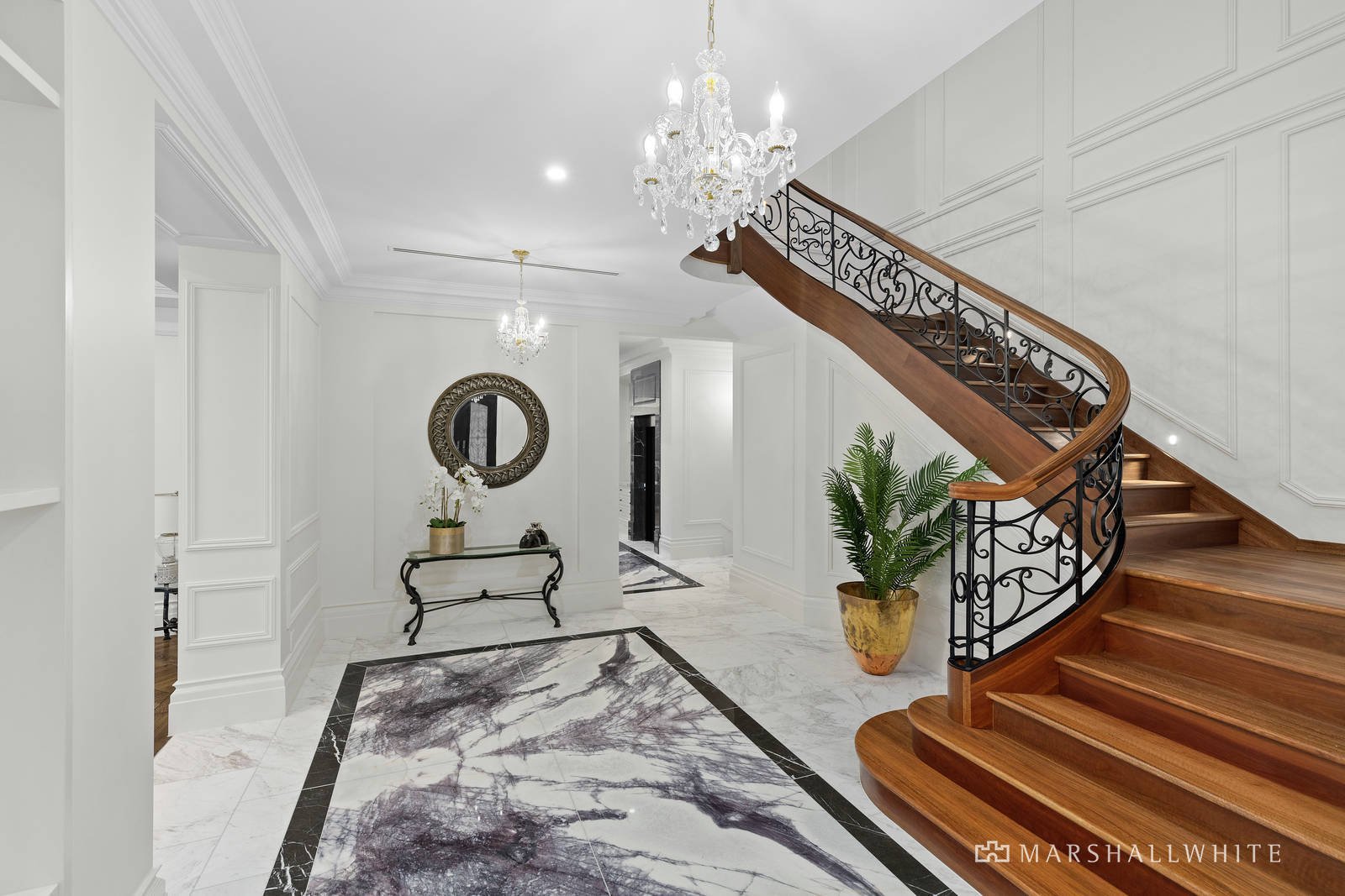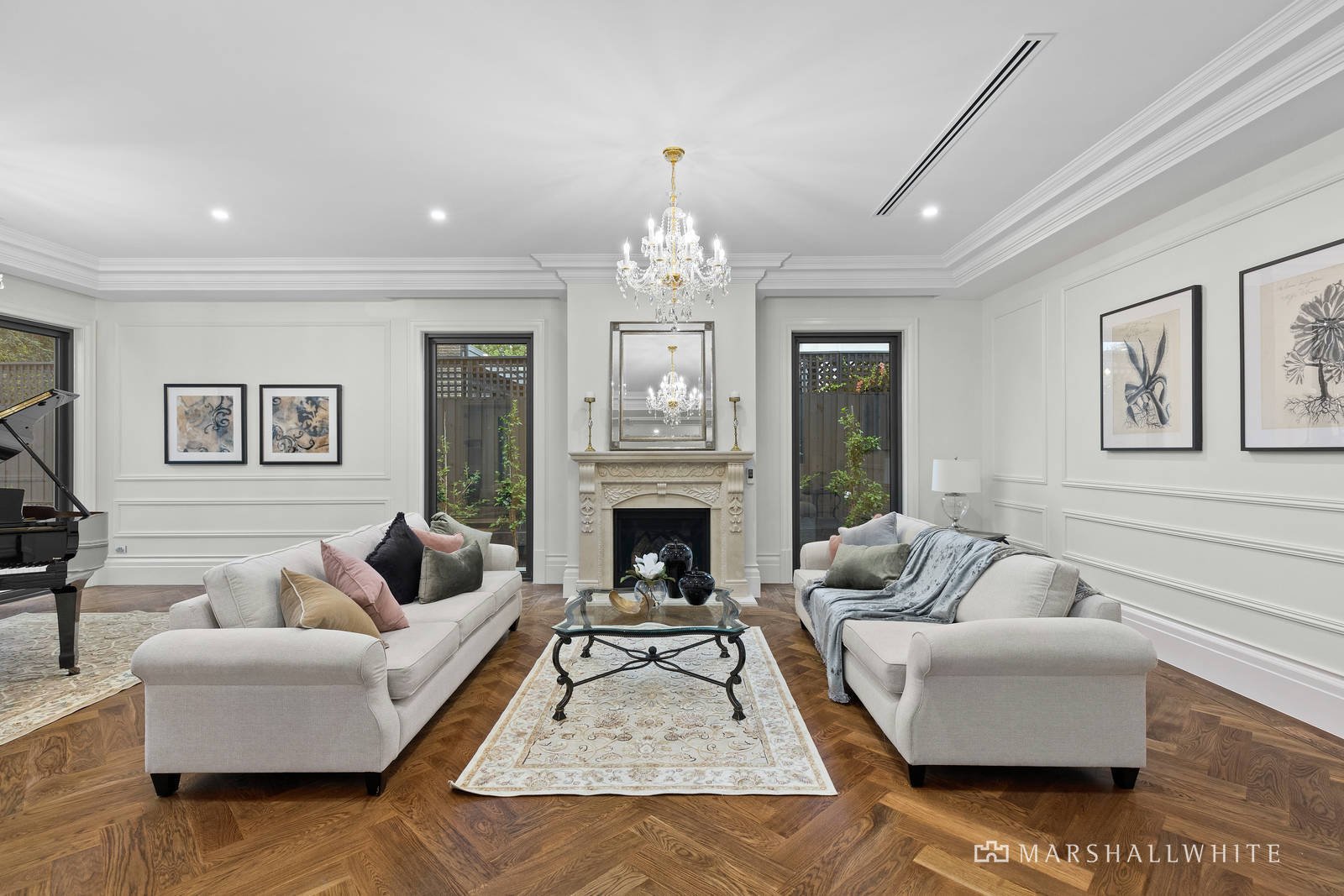 The master bedroom is a private domain with its own sitting room, dressing room and hotel-standard ensuite, whilst another trio of upstairs bedrooms are each serviced by ensuites and walk-through built-in robes. Centrally heated and air conditioned, the home is fully secure with keyless coded entry, intercom entry, a security alarm and CCTV surveillance.