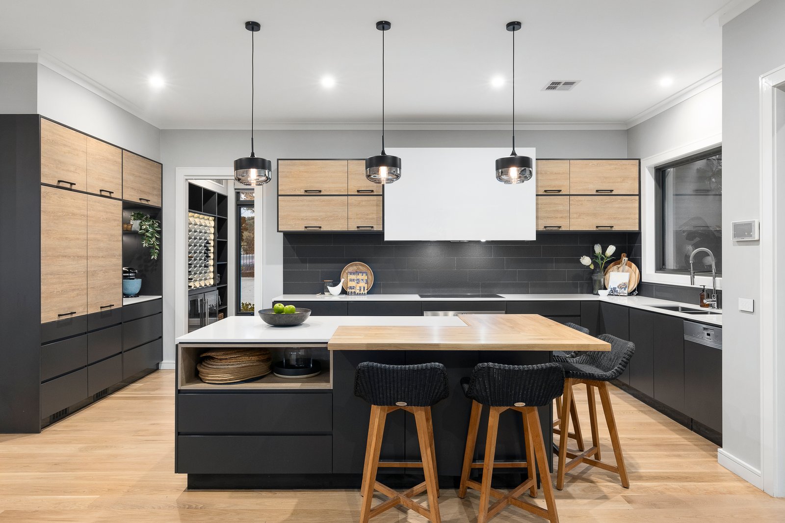 At the heart of the central zone lies the state-of-the-art stone kitchen, a haven for home chefs. It features an island bench with stylish pendant lighting, integrated fridge/freezer, a 900mm induction cooktop, and a generous butler’s pantry that hosts a complete range of Miele appliances including a gas hob, steamer, and a coffee machine.
