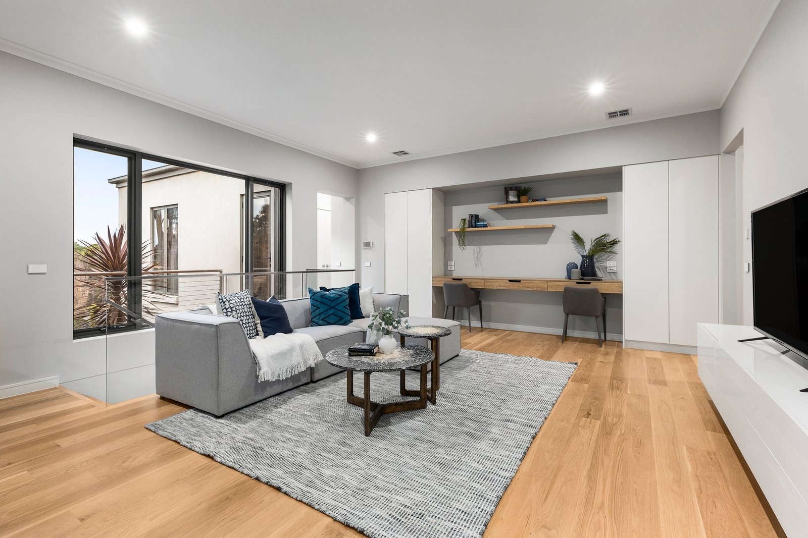 Additional highlights of this home include a dedicated study, basement gym (or an extra study/studio), zoned ducted heating and refrigerated cooling, ducted vacuum system, alarm system, front security gate, rear deck with views, side pergola deck, landscaped gardens, a triple remote garage, and extra off-street parking.