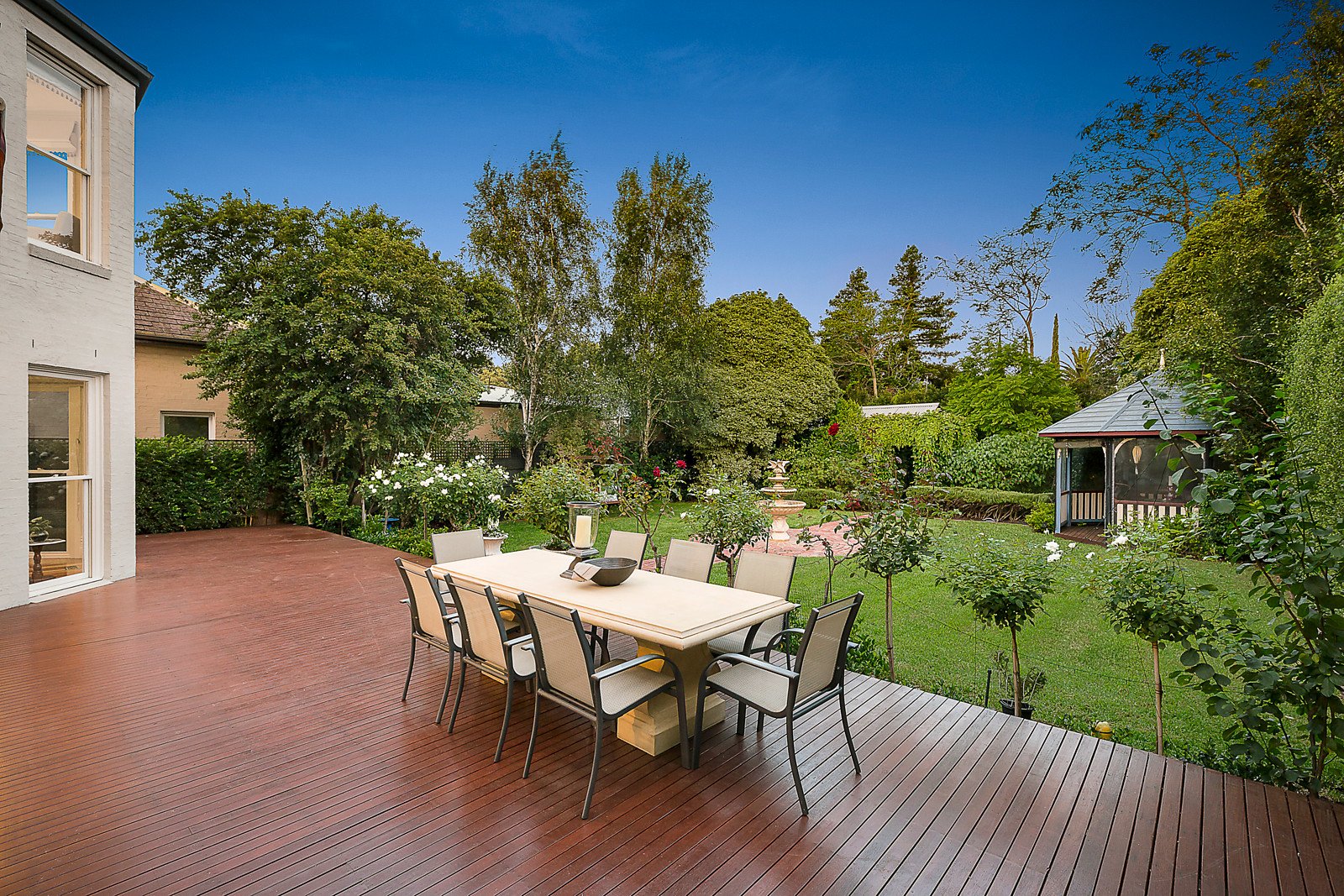 With a superb ambience, the impressive proportions of the interior feature a Baltic Pine arched hallway, high ceilings with roses, a fully-fitted study, formal sitting and dining rooms, downstairs bathroom and main bedroom with WIR and ensuite; plus three additional upstairs bedrooms with a retreat and second family bathroom. A state-of-the-art granite, Asko & Smeg kitchen plus an expansive family domain with conservatory, butler's pantry and adjacent laundry flows through bi-fold doors to a wide deck overlooking a lush and tranquil garden with gazebo - perfect for indoor/outdoor entertaining and relaxation with small or larger groups. Other features include alarm, ducted heating, R/C cooling, marble OFPs, cellar (850 bottle), motorised awning over deck, above & underground water tanks, automated watering system, auto front gates, off-street parking and remote carport with rear lane access from Alma Road.