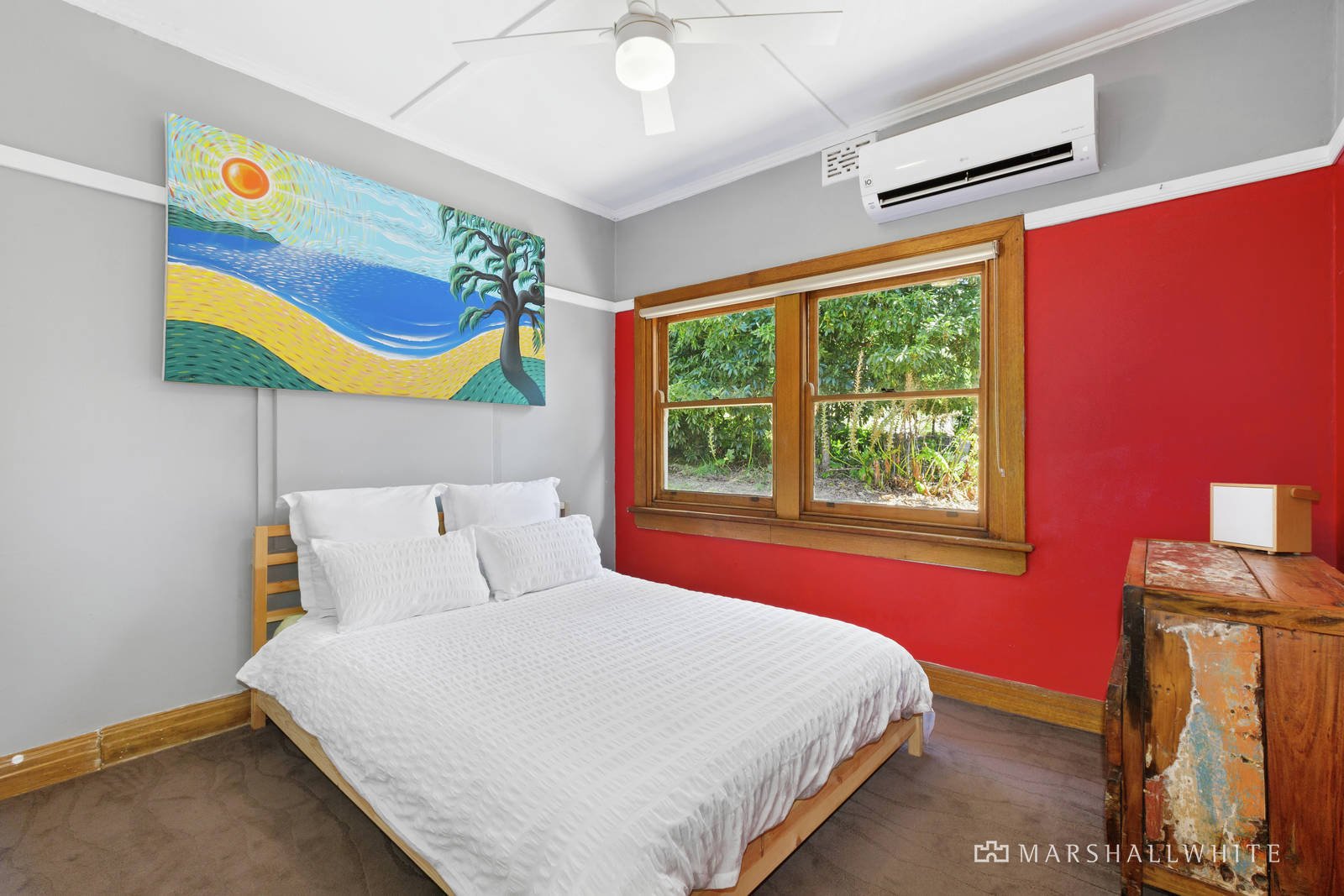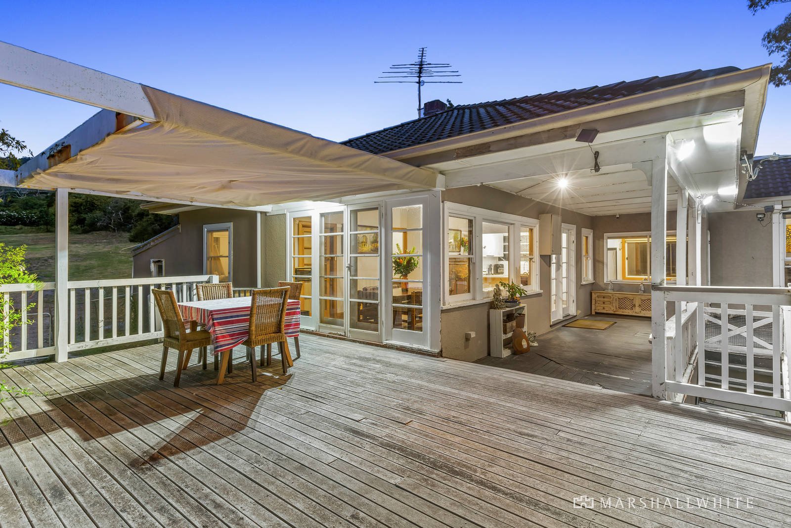 Drawing inspiration from the immediate leafy landscape, the vast wrap-around deck effortlessly welcomes you through spectacular bay aspects, providing a wonderful spot to bask in glorious sunsets and peaceful surrounds. Revealing original timber flooring and earthy tones and textures all harmonising with the leafy cradle of mature trees, the property invites a warm ambience back-dropped by the sparkling turquoise water, while exquisite original details spark interest across two spacious living zones, anchored by an open fireplace. Orientated to enjoy forever changing aspects of the bay, the original kitchen sits central to the entertaining domains, offering seamless service of the front balcony via an adjoining door.