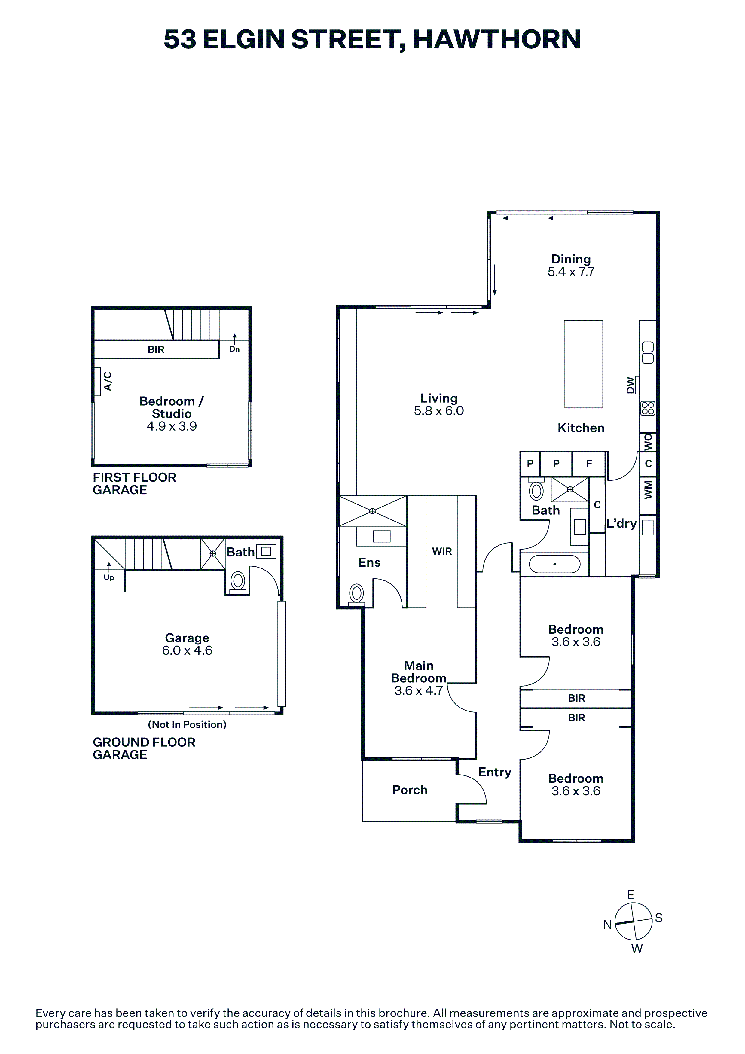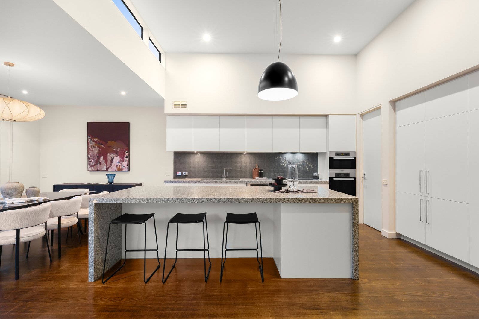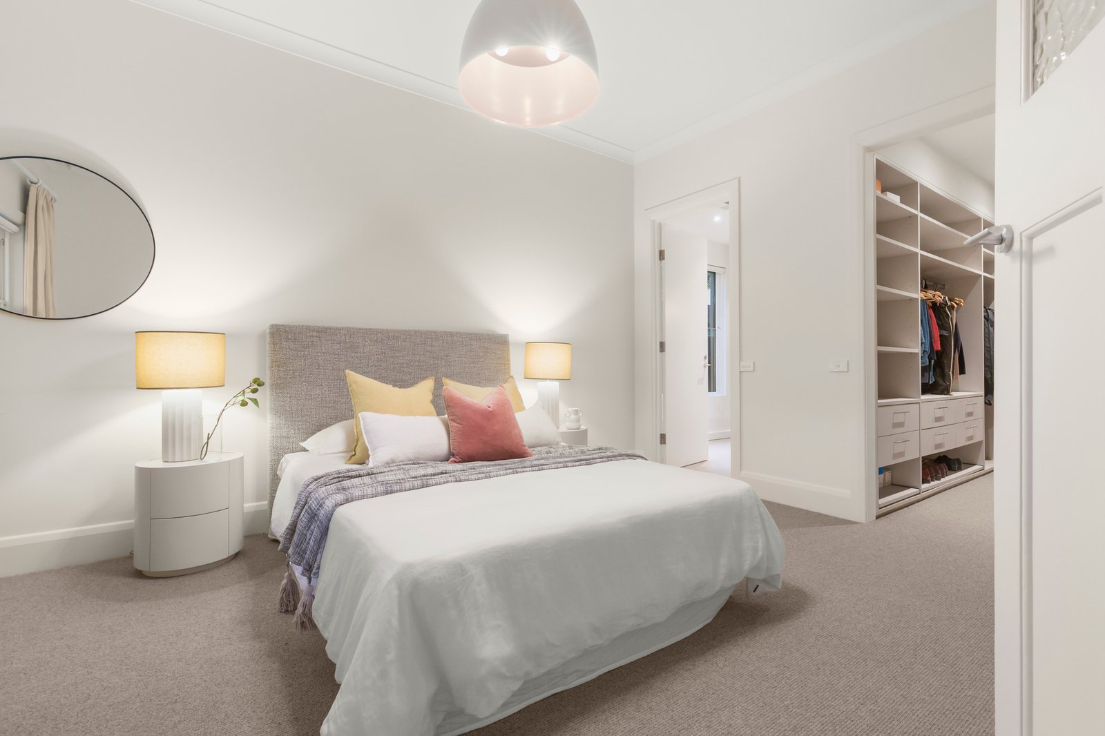 Step inside and enjoy the superb vivid white interior with contrasting dark stained floors through the hallway leading to three front bedrooms, including a lavish main bedroom with a WIR and sparkling ensuite and family bathroom. The stunning north-east facing family living and dining area has floor-to-ceiling glass walls, sky and picture windows and incorporates a sleek entertainer’s kitchen equipped with stone bench tops, prestige Miele appliances, a Liebherr integrated fridge/freezer and adjacent laundry with computer station. Opening through sliding doors to a paved alfresco area and a split-level garage with a bathroom and upper-level multi-function room, fourth bedroom, retreat or home office. Also opening to the garden offers loads of space and options for indoor/outdoor dining and entertaining either small gatherings or larger milestone events. Other desirable attributes include video intercom entry, an alarm, subtle period features, Brivis ducted heating and cooling, R/C air conditioner (room above garage), rainwater tank, front off-street parking and an auto gate to the garage from a rear laneway.