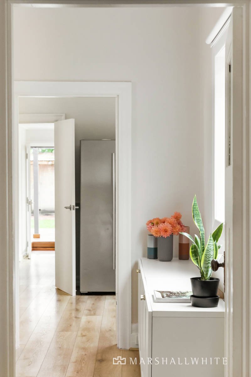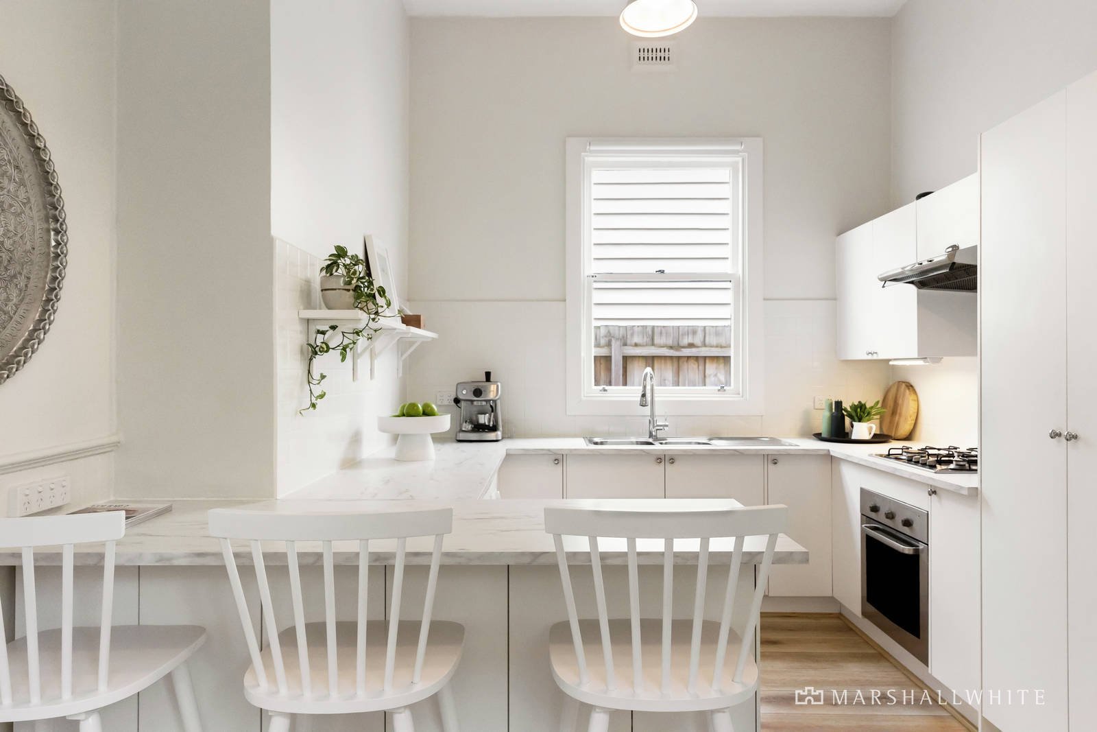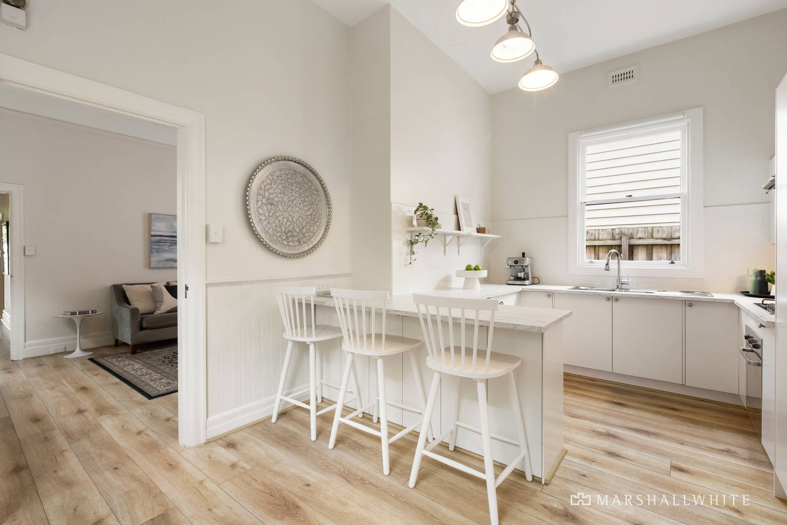 High ceilings accentuate the sense of space in the wide entrance hall and light-filled living room. The bright modern kitchen is tastefully appointed and spacious. A separate dining room opens out to an undercover deck and deep private northwest garden. Two double bedrooms with built-in robes are accompanied by a stylish bathroom and separate laundry.