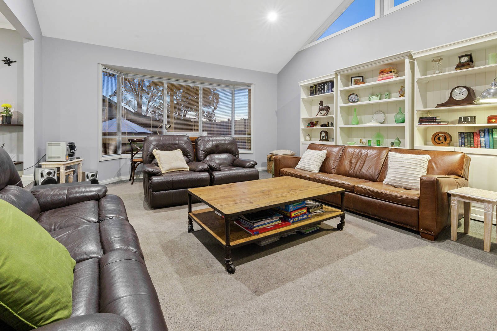 Intelligently designed to ensure space for everyone, the home provides a layout that encourages entertaining, welcoming you into the free-flowing family hub, encompassing open plan dining and kitchen inclusive of stainless steel appliances and island bench. With eye-catching architectural details, the sunken lounge off-sets the energetic kitchen and dining, offering a spacious and inviting place to relax and unwind.