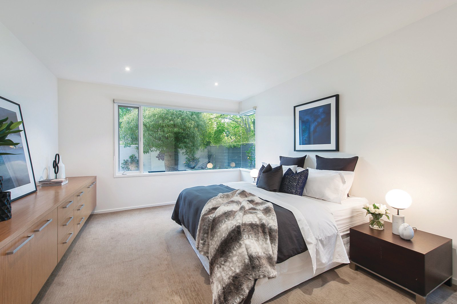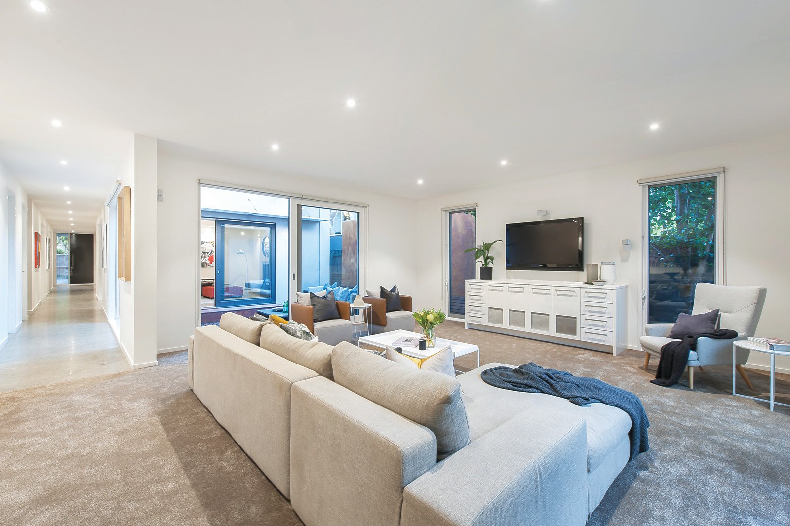 An inspired design, this abode features two distinct living zones of generous proportions with bespoke cabinetry. An opulent north-facing formal living room with vaulted ceilings overlooks the private sundrenched courtyard. The main bedroom includes a sophisticated walk in robe and light filled ensuite. Upstairs, a large living space along with three generous bedrooms with built in study desks, each with built in robes, make this a superb family residence.