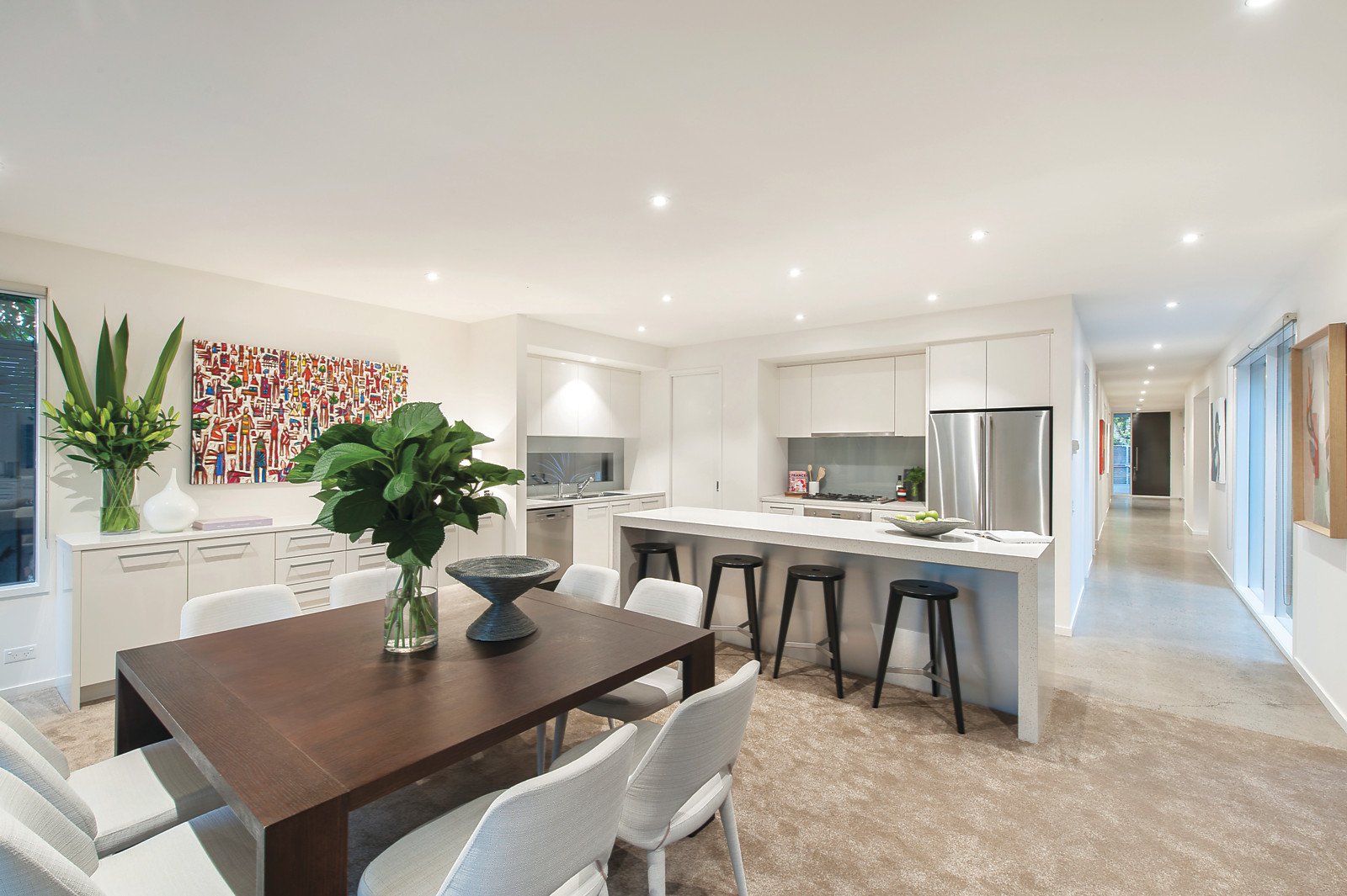 Immaculately presented, this architecturally designed family residence highlights an abundance of natural light with luxury high end finishes throughout, presenting an unrivaled lifestyle opportunity. A magnificent open plan kitchen, living and dining space is designed to provide uninterrupted views of the stunning landscaped gardens and pool. Full width glass sliding doors open to a sprawling alfresco entertaining area, complete with contemporary timber decking, a solar heated salt water swimming pool and an easily maintained garden. The sleek state of the art kitchen includes Smeg and Miele appliances, a walk in pantry and an island bench.