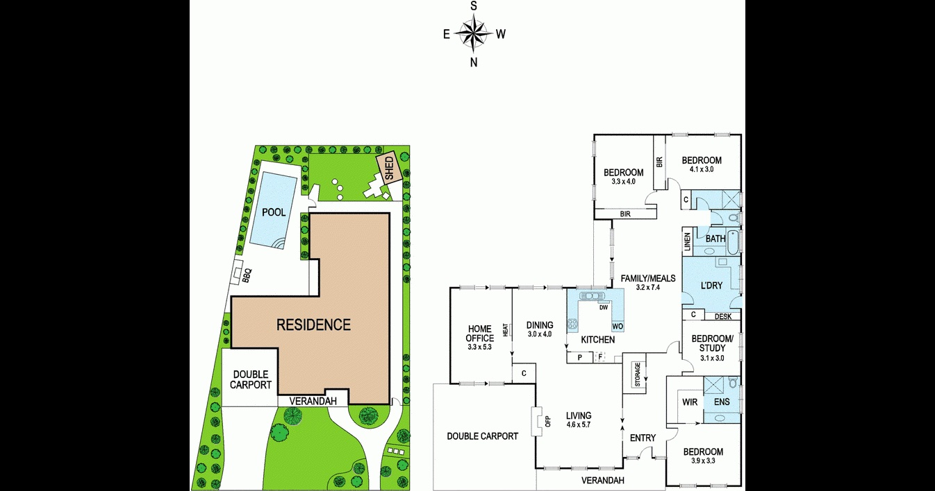 A large study which could double as a teenager’s retreat is timber lined and also overlooks the pool/patio area. A supersized laundry with built in cupboards/sewing desk and free-standing cupboard, storage area, garden shed and double car accommodation, warm slab heating, evaporative cooling and security alarm complete this attractive residence.