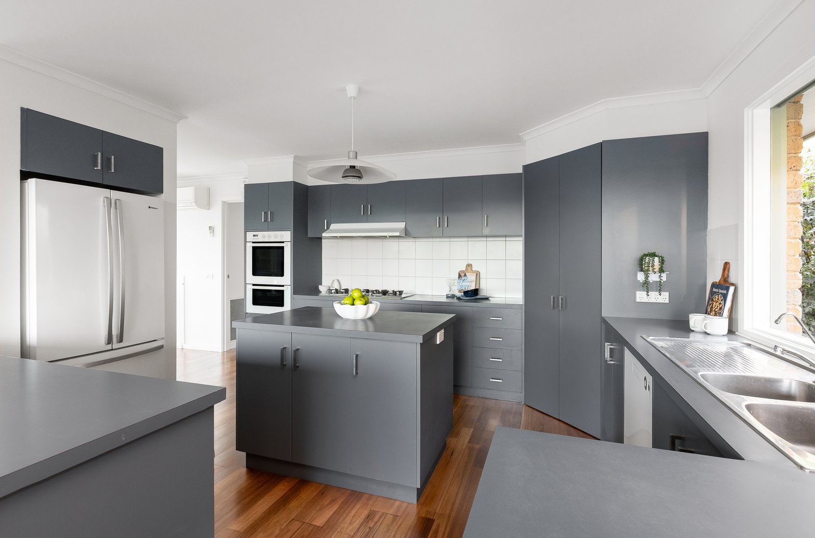 The undoubted highlight of this memorable residence is the light-filled and expansive central living zone, which has ample space for lounging and dining, a warming gas log fireplace, and immense windows which frame the bushlands vistas. Also incorporated into the main living hub is the practical and large kitchen, which enjoys excellent bench space and quality Goldline/ASKO appliances.