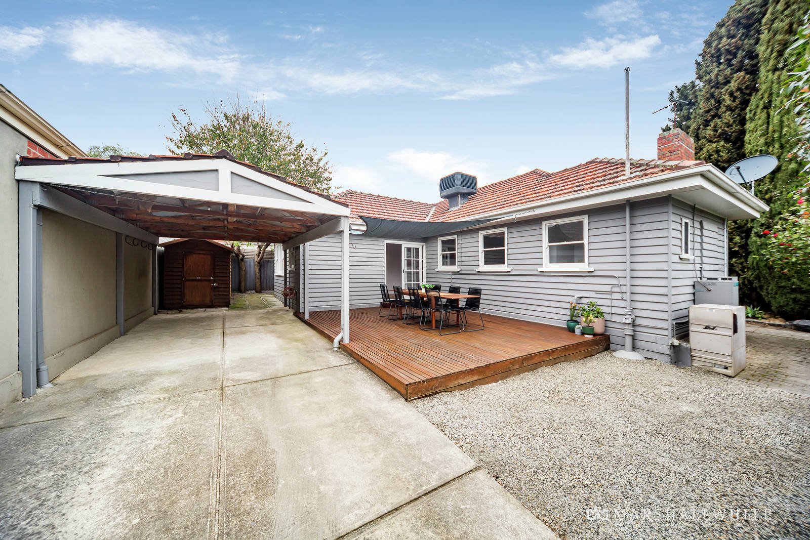 All with hardwood flooring, solid timber architraves and internal doors, the home reveals a bright family-sized kitchen that sits semi-attached to an attractive lounge / dining in which a large fireplace is central. Meanwhile, each of the bedrooms is impressively proportioned - one with built-in robes - in this cottage-like residence with a claw bath in the bathroom, separate wc, laundry, ducted heating and evaporative cooling, as well as secure parking for two vehicles - one under the cover of a carport.