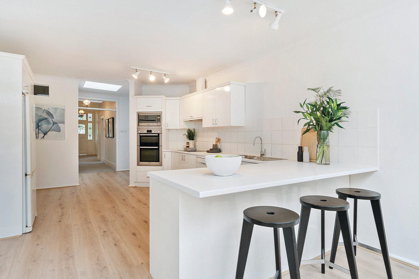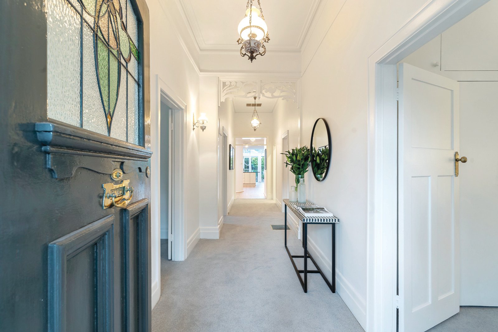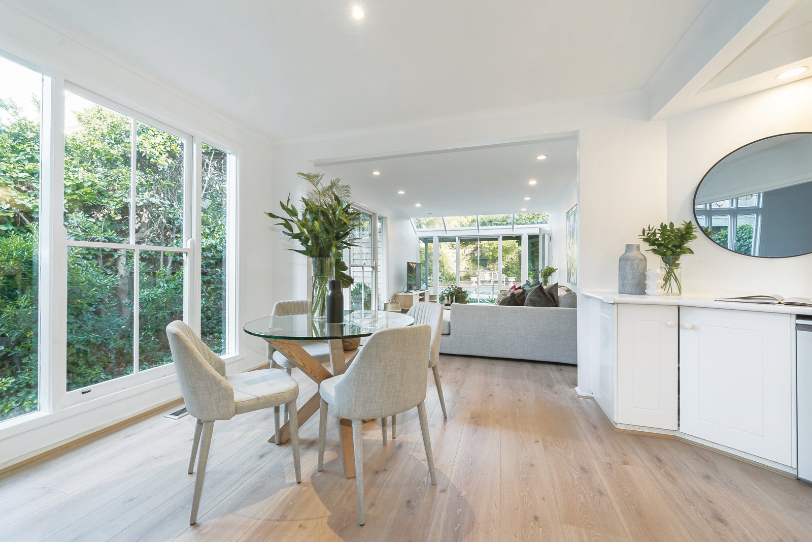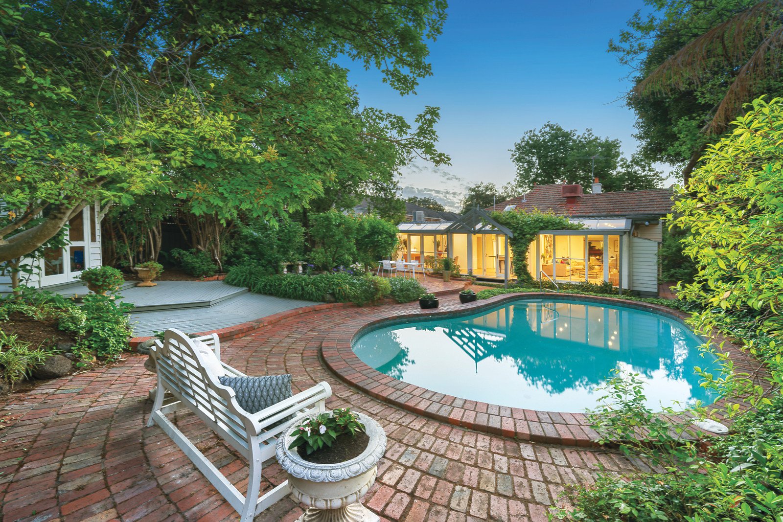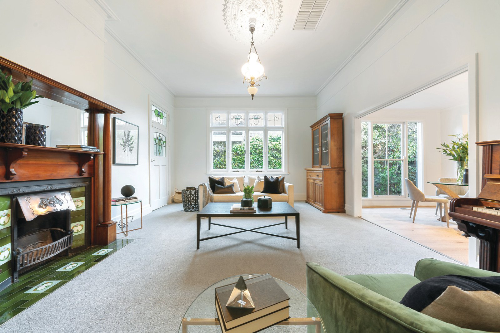Natural light streams through the wide entrance hall featuring high ceilings and leadlight windows, an elegant sitting room, gorgeous main bedroom with stylish en-suite and walk in robe and two beautiful double bedrooms with built in robes. Generously proportioned and flexible living and dining areas served by a well-appointed kitchen with a sun-drenched family dining space overlook the deep leafy private northeast garden with pool and studio/pool house.