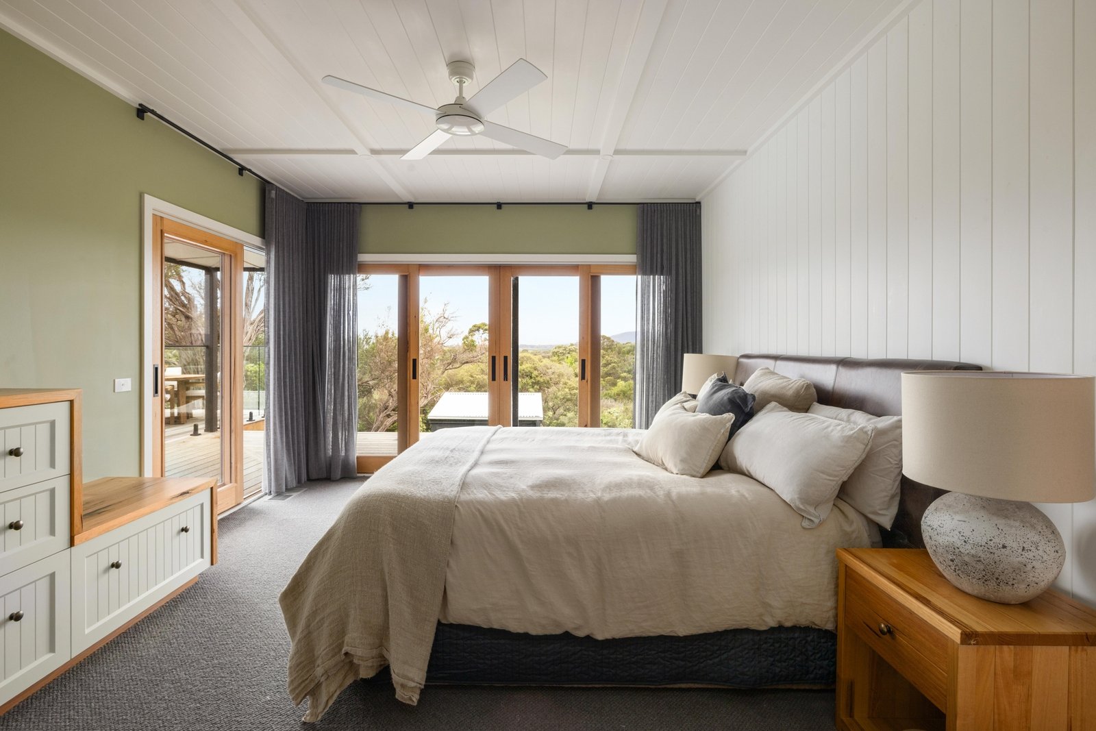 Offering sweeping 360-degree vistas of the Mornington Peninsula's southern expanse, this entirely reimagined residence combines its endearing modern farmhouse aesthetic with the natural beauty of a 16-acre (approx.) rolling terrain so characteristic of the Fingal landscape.