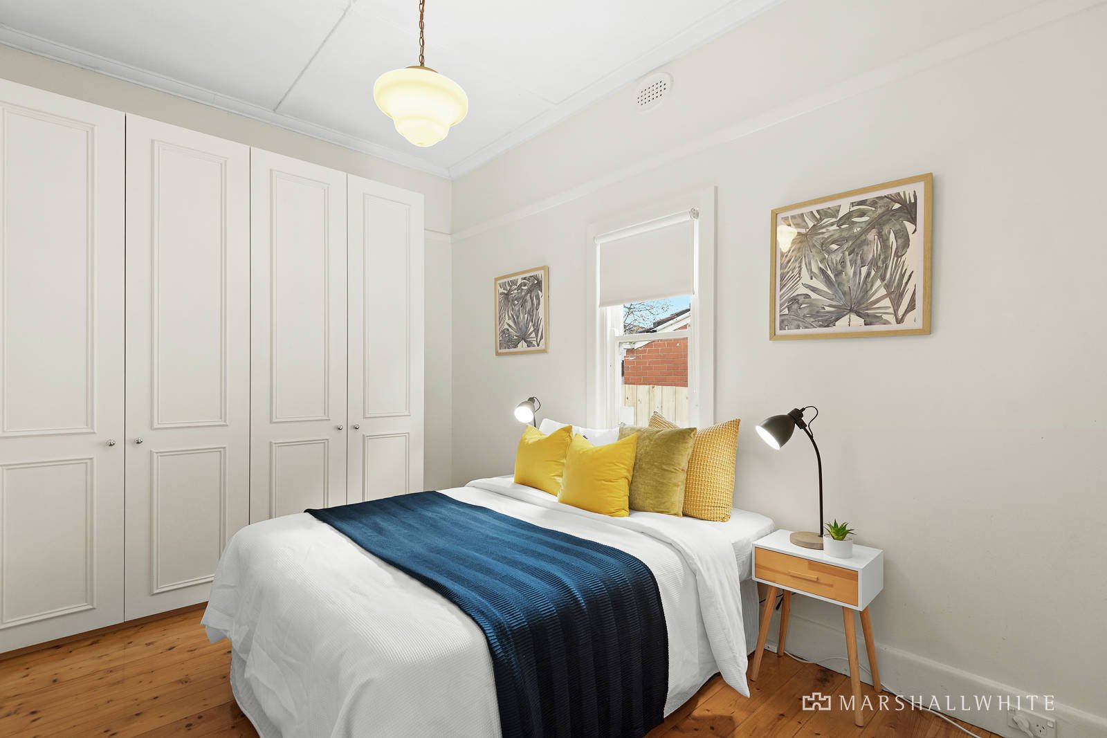 All with polished Baltic Pine under foot, fine detail and strapped ceilings, the home is resplendent and light-filled, well elevated from the street and with views of Stradbroke Park, as it reveals a classical lounge and dining room each with open fireplaces. A modern kitchen/meals retains a sympathy with the home's original era, whilst two of the bedrooms have been fitted with built-in robes and there is reverse cycle heating/cooling. Further highlights include a heritage styled bathroom, a laundry with second shower, a lock-up garage and powered workshop, as well as paved outdoor living that is delightfully set amidst the depths of the home's backyard.
