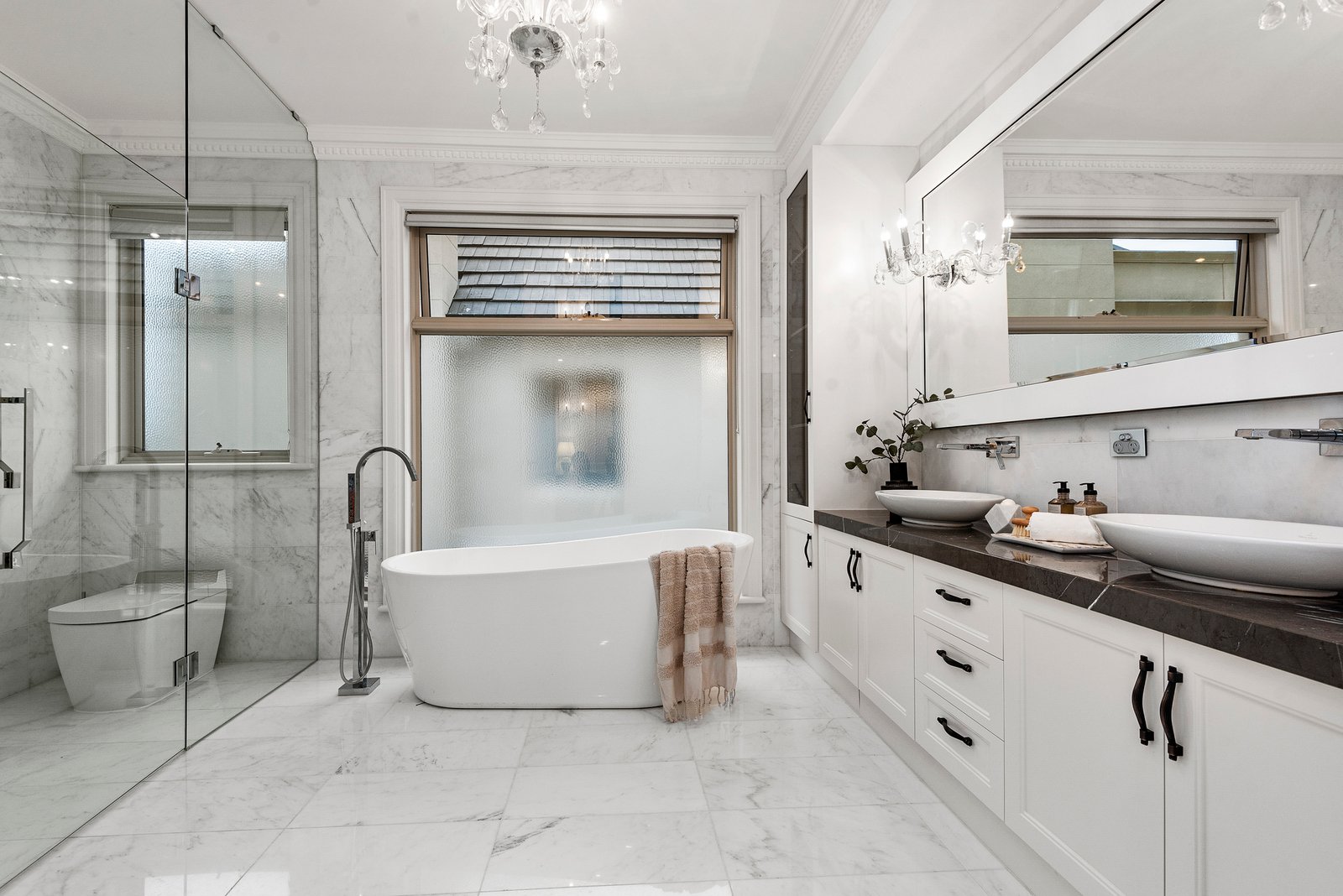 Palatially proportioned and crafted to deliver an imposing sense of majesty, this magnificent family residence is exclusively situated in the zone for Balwyn High School with five bedrooms, five bathrooms, a study and a sundrenched alfresco entertainers’ lifestyle that very few can match. Inspired by the grandeur of French Provincial architectural excellence, the home is underpinned by a commitment to luxury as it proudly showcases a liberal use of Calacatta Marble surfaces, European Oak flooring, exquisitely detailed ceilings and refined chandeliers throughout.