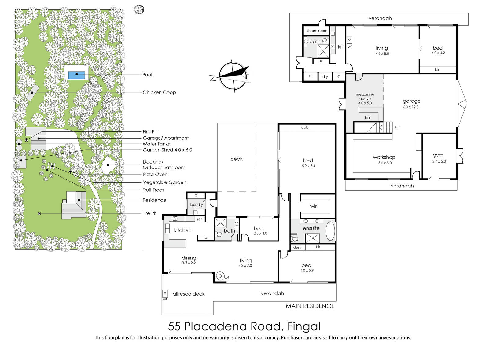 Designed to ignite the senses, the property's sprawling gardens make an immediate impact, winding through approximately 3.5 acres of coastal tracks and garden rooms, where working kitchen gardens, an orchard, chicken house, workshop and a pool are unveiled. The main residence sits neatly within its verdant surroundings, exuding a peaceful ambience enhanced by the crisp white nordic aesthetics and oversized sliding glass that connects the living spaces and kitchen with the vine-draped alfresco zone. A suspended fireplace and timber floors add to the warmth, highlighting intimate accommodation with three spacious and zoned bedrooms, including the sumptuous main bedroom, with an ensuite, WIR and room to lounge inside and out.
