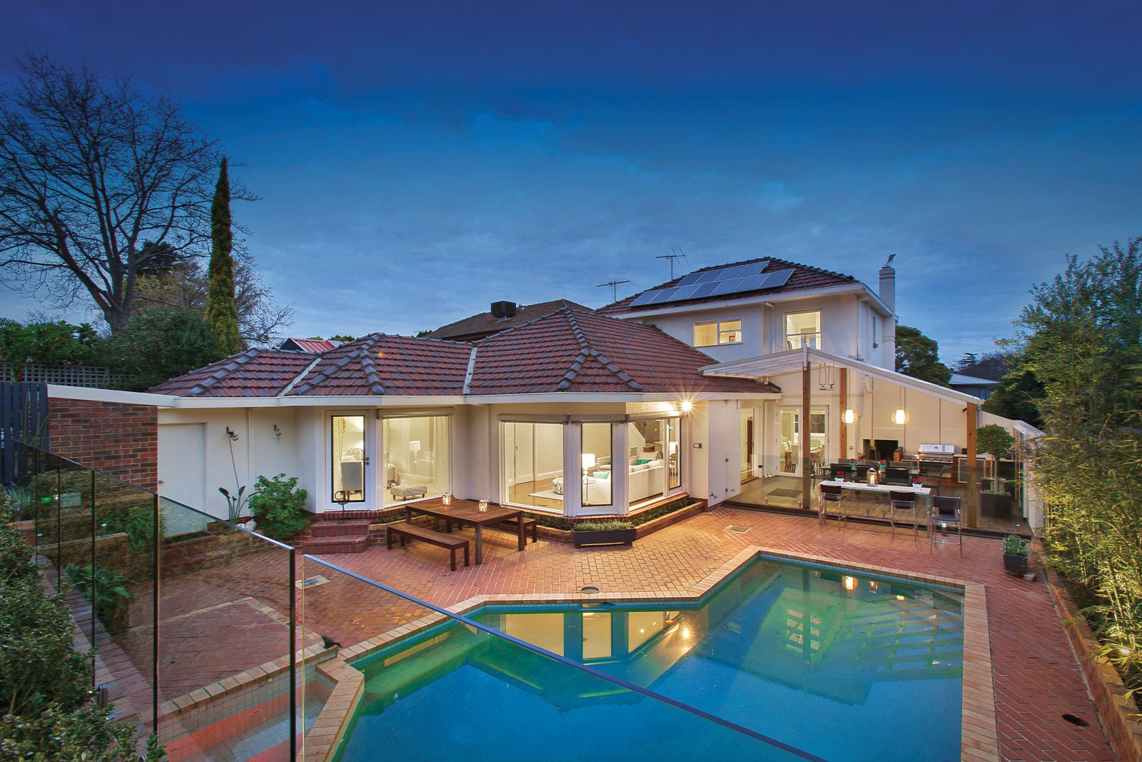 An impressive & substantial family home. It maintains its quality art deco features whilst providng stunning expansive refurbished living & entertaining areas. Set on a magnificent terraced allotment it is enviably situated moments from Gardiners Creek walking and bike trails, close to Darling Park with easy access to many of Melbourne's prestige schools and several shopping options including Ashburton Village or Chadstone; within minutes of Solway Primary School and CityLink for travel to the CBD - all delivering a desirable range of amenities and recreation options. The interior geared to zoned family living features a preferred northern rear aspect, parquetry and wide board timber floors, entrance hall, formal sitting and dining rooms, three downstairs bedrooms, one with WIR & ensuite, family bathroom and a laundry. The family living area includes a stylishly appointed granite and Euro stainless steel hostess kitchen with informal dining & living flowing to elevated lawn and lush garden area with pergola retreat plus a superb pool and spa. Whilst a generous upstairs parents domain includes a study, retreat and master bedroom with dual WIRs and ensuite. Other features include ducted heating and, both reverse cycle evaporative cooling, roof storage, solar panels, double carport, garage and off-street parking plus optional rear lane access.