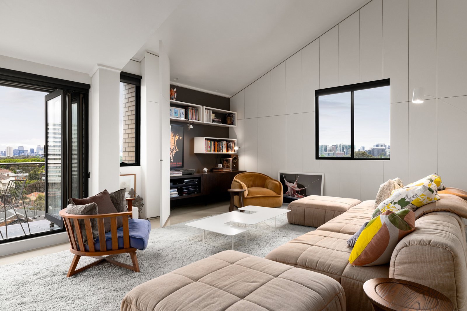 Fronting panoramic views that sweep from the bay to the city skyline, this architecturally transformed penthouse by Whiting Architects occupies a prized position atop a prominent 1970s complex with uninterrupted frontage to park, sand and sea. Awarded a High Commendation in the 2012 Houses Awards, shortlisted for the 2013 Australian Interior Design Awards, and featured widely for its standout design, it sets a precedent in elevated waterfront living.