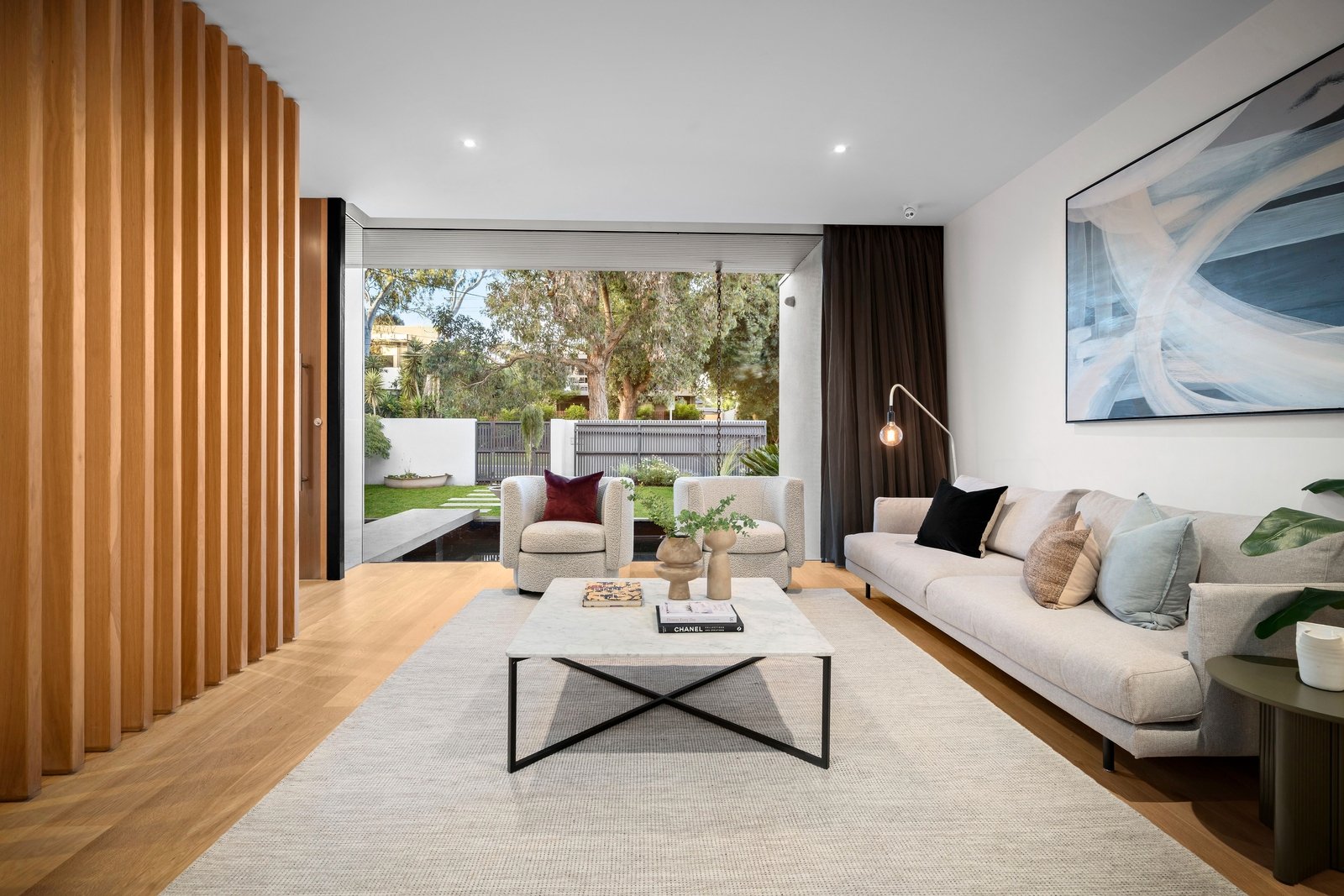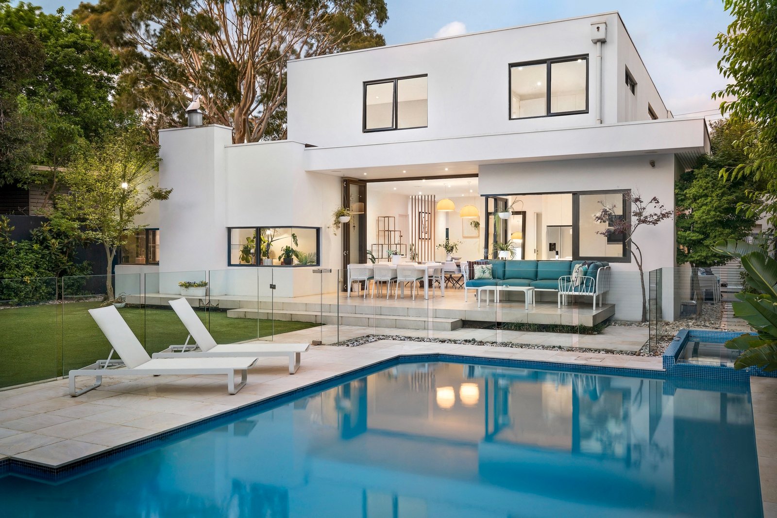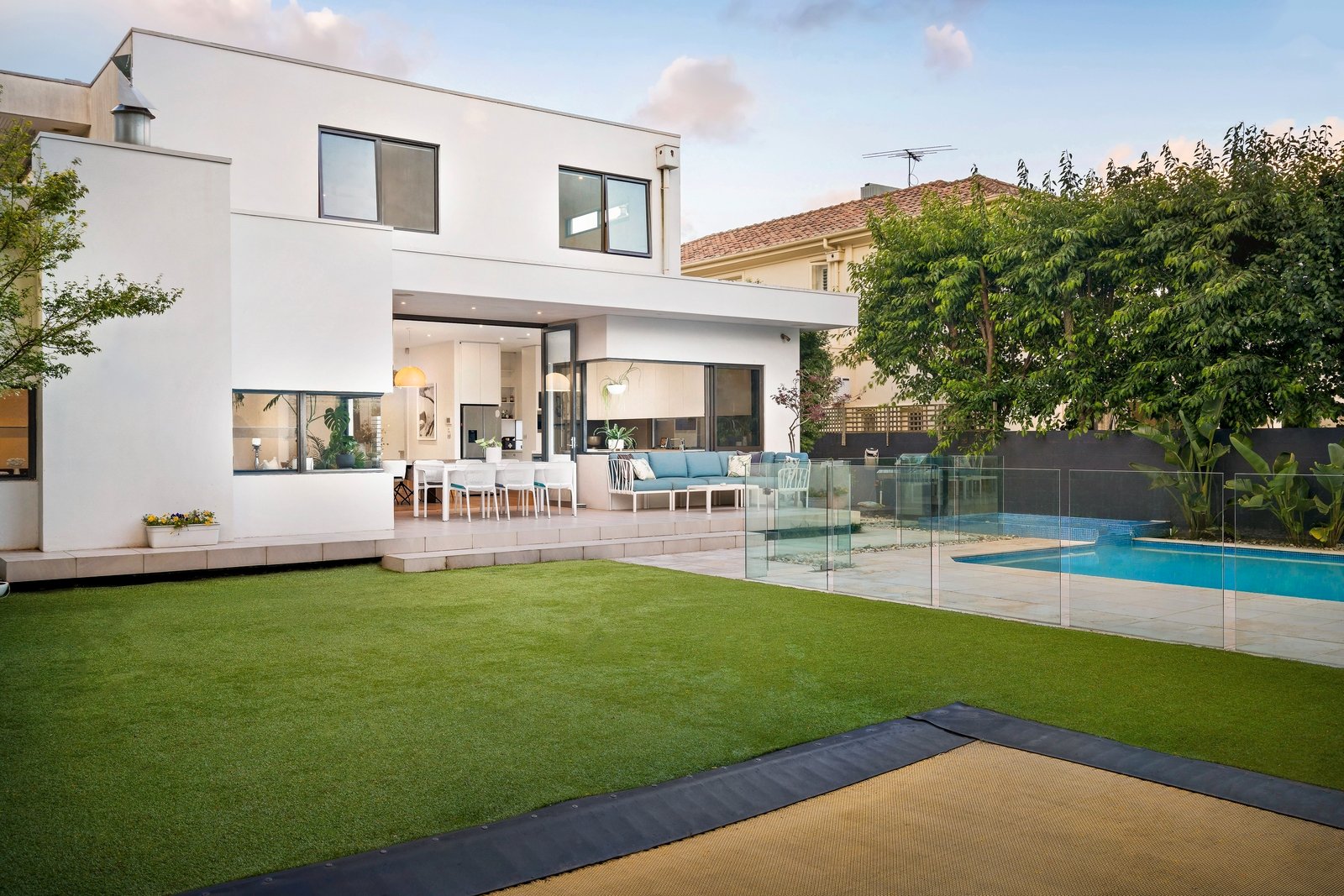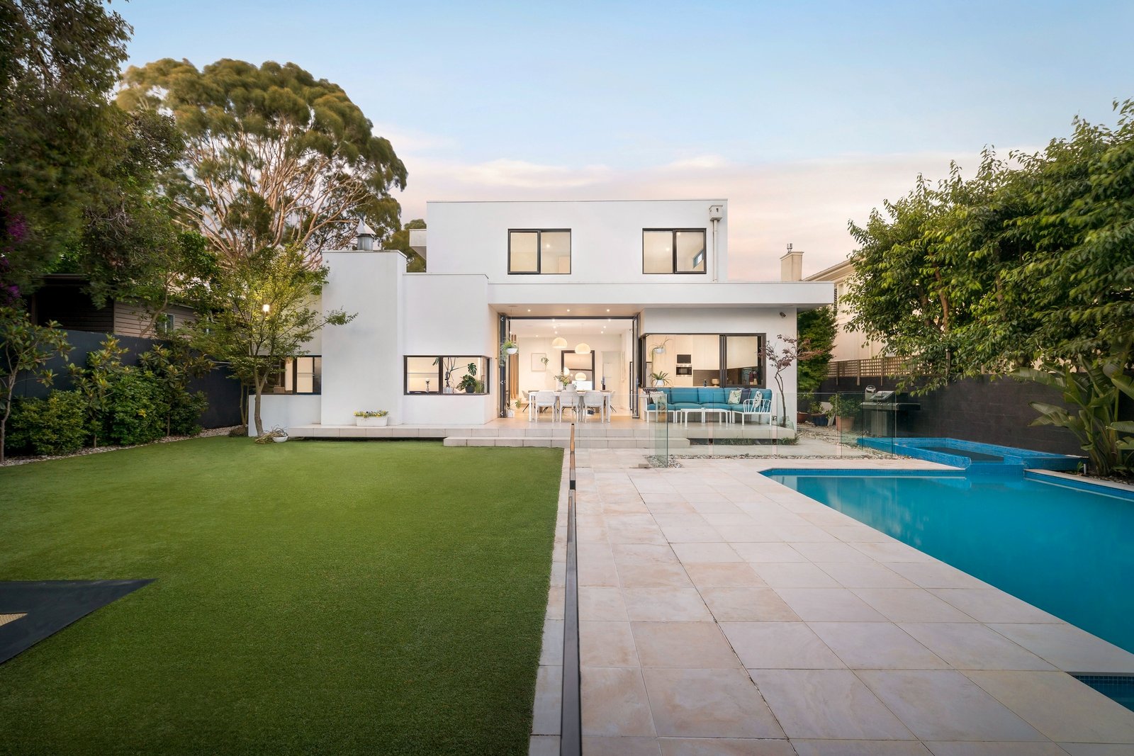 A private world of poolside excellence elevates everyday living and introduces a resort vibe to this superb lifestyle oasis. Luxuriously appointed four-bedroom and study/fifth bedroom home has exquisite indoor-outdoor design, with the expansive main living and dining zone opening out to a streamlined pool, terrace and low-maintenance greenery. Bespoke features abound, from when you walk across water to reach the front door to the luxury interior fitout in three living zones, a large gourmet kitchen with a butler’s pantry and garden servery, and a ground-floor main bedroom retreat with garden views from the bedroom and ensuite bath. Take the time to see why this house stands out from the crowd. It sits proudly on leafy Ardoyne Street, 250 metres from Royal Melbourne Golf Course and an easy walk to Black Rock Primary School, the beach, shops and cafes. The big-picture vision for contemporary luxury is outstanding, and all the exacting details that elevate everyday living are in place. Relax after a busy day in the zoned lounge, where floor-to-ceiling glass brings in views of the large contemplation pond. Full-height bifold doors open from the dining area onto the undercover terrace for seamless indoor-outdoor spaciousness, and upstairs is where kids have their own sense of space with a living zone, three bedrooms, two bathrooms, and full-width balcony. Precision design shows in the party-size kitchen, featuring three Miele ovens, a Vintec wine fridge, plenty of bench space, and the perfect vantage point to see kids in the pool, spa and garden. Look forward to a home complete with remote-gate access to a double garage and off-street parking, inspired use of architectural timber, study with desks and storage, Sonos system, inground trampoline, and laundry with a drying cupboard and ironing system. A video intercom offers secure access, and there’s security cameras for peace of mind. Surrounded by treetop views and quality homes, this is an outstanding residence in a prized location.