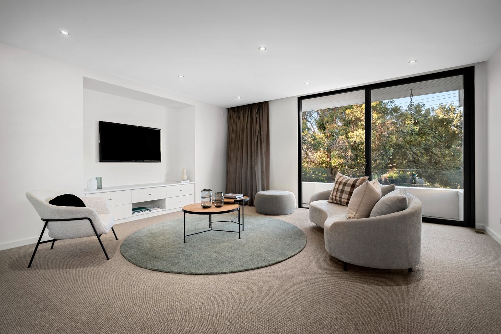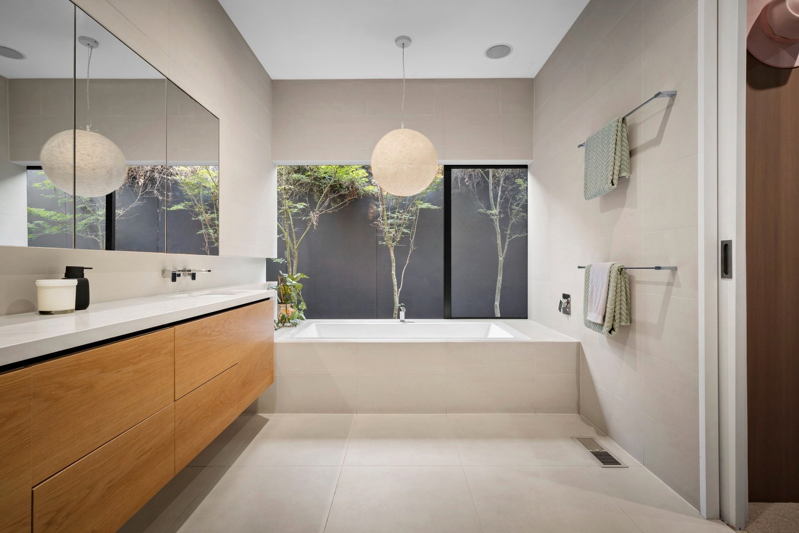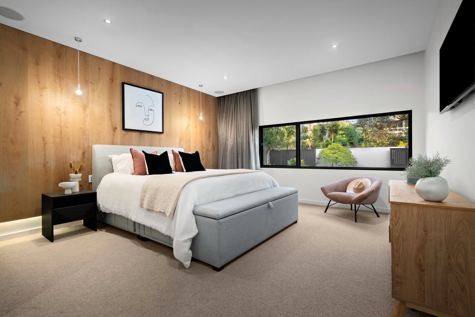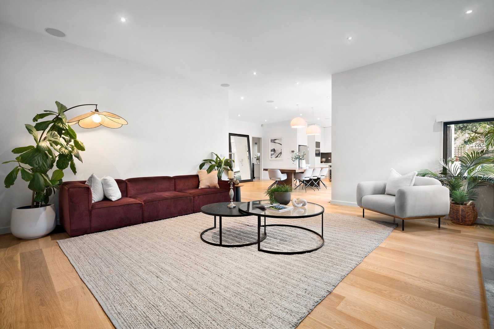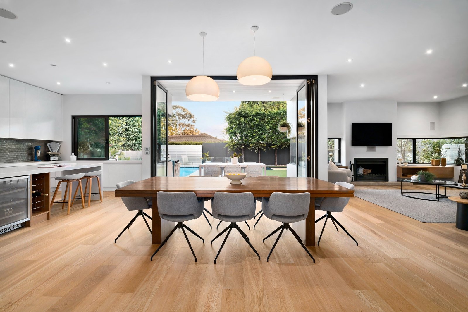 A private world of poolside excellence elevates everyday living and introduces a resort vibe to this superb lifestyle oasis. Luxuriously appointed four-bedroom and study/fifth bedroom home has exquisite indoor-outdoor design, with the expansive main living and dining zone opening out to a streamlined pool, terrace and low-maintenance greenery. Bespoke features abound, from when you walk across water to reach the front door to the luxury interior fitout in three living zones, a large gourmet kitchen with a butler’s pantry and garden servery, and a ground-floor main bedroom retreat with garden views from the bedroom and ensuite bath. Take the time to see why this house stands out from the crowd. It sits proudly on leafy Ardoyne Street, 250 metres from Royal Melbourne Golf Course and an easy walk to Black Rock Primary School, the beach, shops and cafes. The big-picture vision for contemporary luxury is outstanding, and all the exacting details that elevate everyday living are in place. Relax after a busy day in the zoned lounge, where floor-to-ceiling glass brings in views of the large contemplation pond. Full-height bifold doors open from the dining area onto the undercover terrace for seamless indoor-outdoor spaciousness, and upstairs is where kids have their own sense of space with a living zone, three bedrooms, two bathrooms, and full-width balcony. Precision design shows in the party-size kitchen, featuring three Miele ovens, a Vintec wine fridge, plenty of bench space, and the perfect vantage point to see kids in the pool, spa and garden. Look forward to a home complete with remote-gate access to a double garage and off-street parking, inspired use of architectural timber, study with desks and storage, Sonos system, inground trampoline, and laundry with a drying cupboard and ironing system. A video intercom offers secure access, and there’s security cameras for peace of mind. Surrounded by treetop views and quality homes, this is an outstanding residence in a prized location.