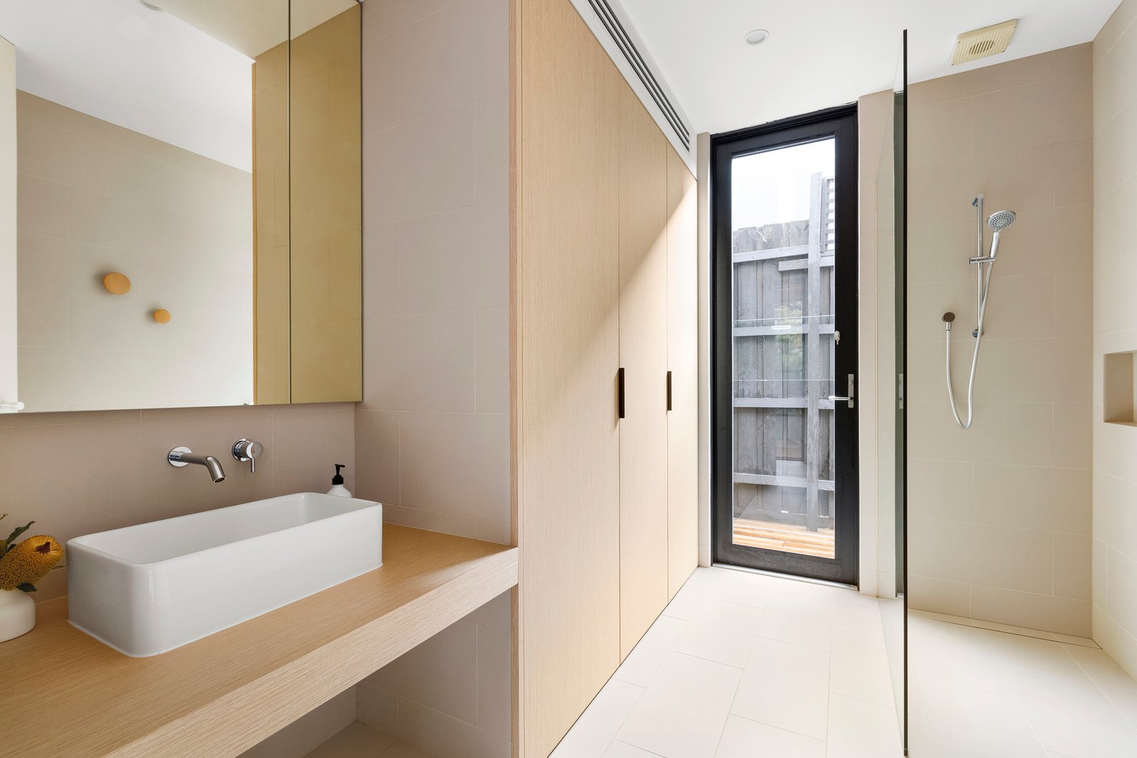 Upstairs, two well-proportioned bedrooms each include their own ensuite, with the north-facing main suite complemented by a walk-in robe. Reverse cycle heating and cooling, double glazing, designer lighting, extensive storage and a single remote garage complete an exceptional home of uncompromising quality, all positioned opposite parkland and moments from Bay Street, South Melbourne Market, the beach, schools and light rail access to the CBD.