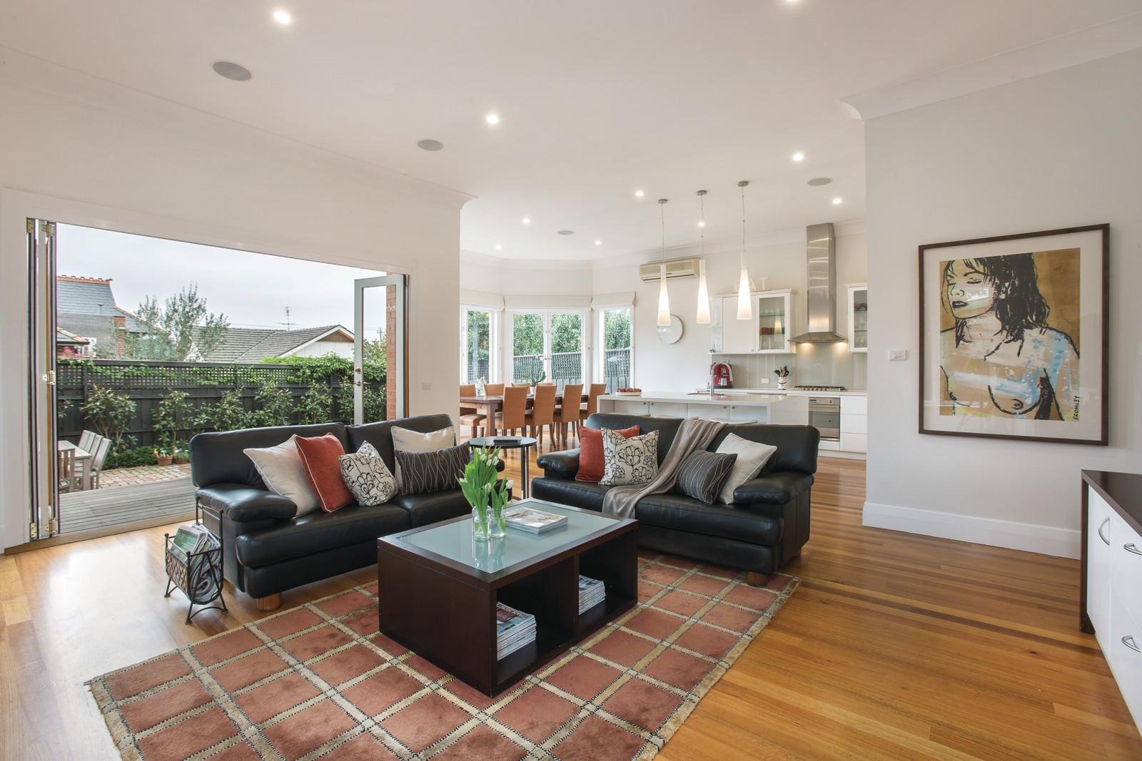From the classic tuck-pointed façade to the designer style and coveted leafy location, this stunning freestanding solid brick Edwardian residence has it all. The impressive blending of period elegance with contemporary chic has delivered a light-filled, generously proportioned and inviting family home near Melbourne's best schools, Glenferrie Rd shops and cafes, trams and Malvern Gardens. Highlighted by ornate ceilings and timber floors, the L-shaped hallway introduces a captivating formal sitting room with open fireplace, beautiful main bedroom with open fireplace, walk in robe and marble en-suite, three further bedrooms with built in robes and a stylish bathroom. High ceilings are maintained through the sensational living and dining areas with a state of the art gourmet kitchen boasting stone benches and Smeg oven. Bi-fold doors open completely to a glorious northeast facing private landscaped garden with large paved entertaining terrace. Impeccably presented with compelling flair throughout, it also includes ducted heating, RC/air-conditioning, alarm, powder-room, audio wiring, plantation shutters, attic storage, laundry, auto gates and off street parking.