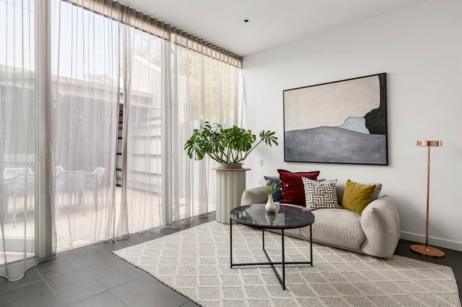 A centrally located guest powder room, intercom, slate stone ground floor, Euro laundry, skylights, and split-system heating and cooling in every room, with a wide access secure garaging via a remote roller door looking into Argo Park — this home offers an exceptional lifestyle for busy professionals, young family or pet lovers in one of Melbourne’s most sought-after precincts.