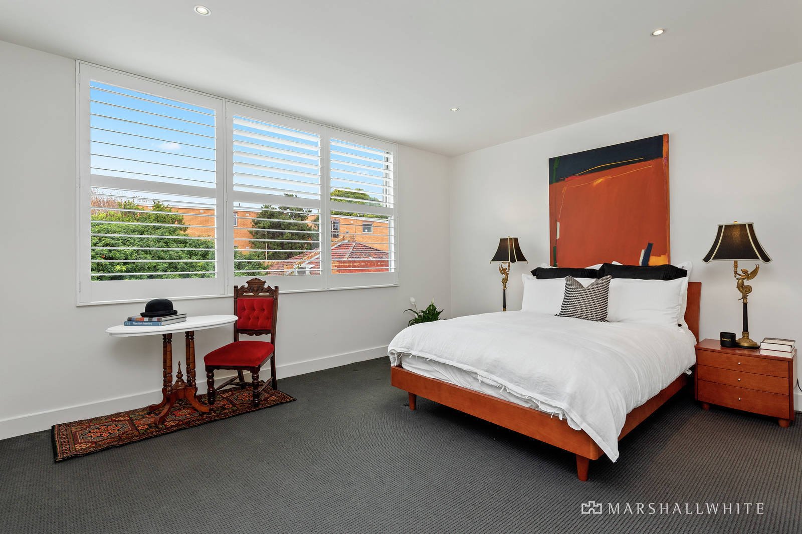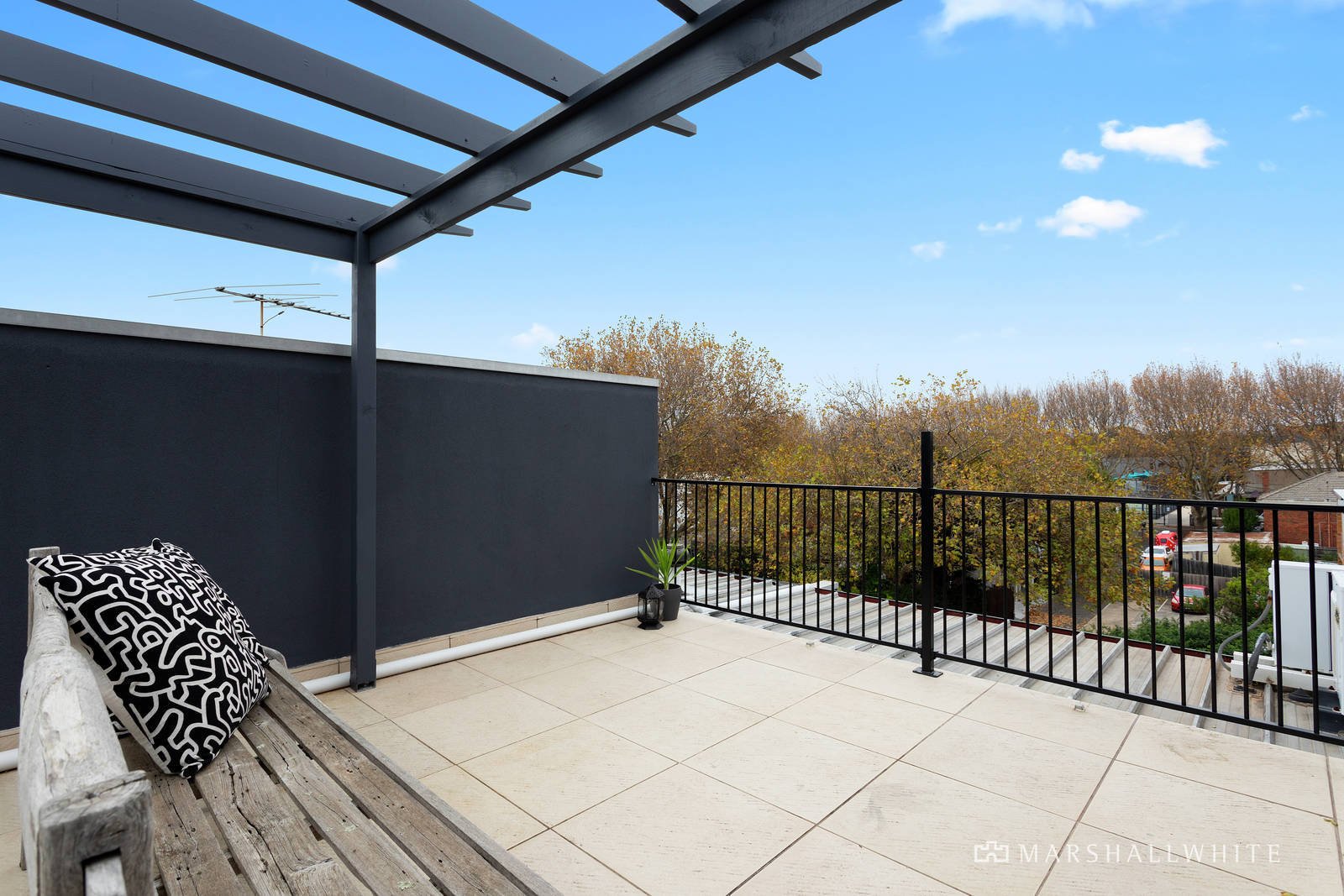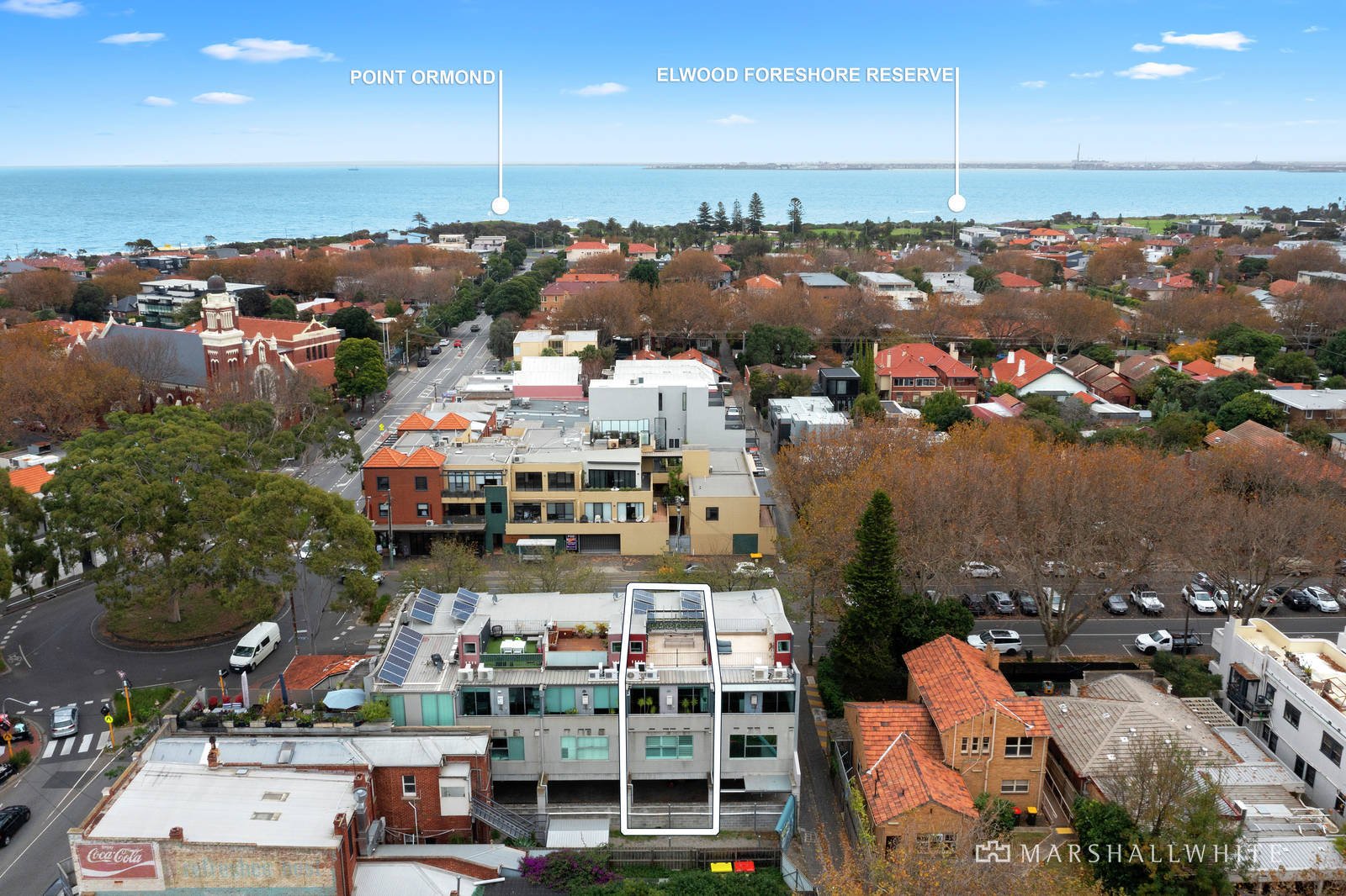 Perfectly positioned at the "Paris end" of leafy Broadway, one of Elwood's premier avenues, this elevated town residence features three bedrooms, two bathrooms and a private double lock-up garage. Captivating soaring ceilings accent the light-filled living zones, while three spacious balconies and a fantastic rooftop terrace inspire seamless indoor-outdoor living. Excellent for entertaining and everyday practicality, the well-appointed kitchen offers plenty of storage at the heart of two separate living/dining zones. An oversized main bedroom comes complete with a marble and travertine ensuite featuring a double shower, while two additional double bedrooms share the central family bathroom, and offer terrace and garden outlooks, delivering great flexibility for a range of lifestyles and stages. This unmatched location is mere seconds from the famous Elwood Patisserie, a short walk to village boutiques, revered cafes and restaurants and iconic Elwood beach. Zoned for Elwood Primary School and Elwood Secondary College, tennis courts, parks and reserves lie close by as well as excellent transport links to the city.