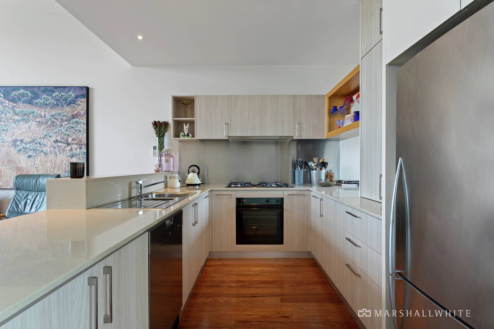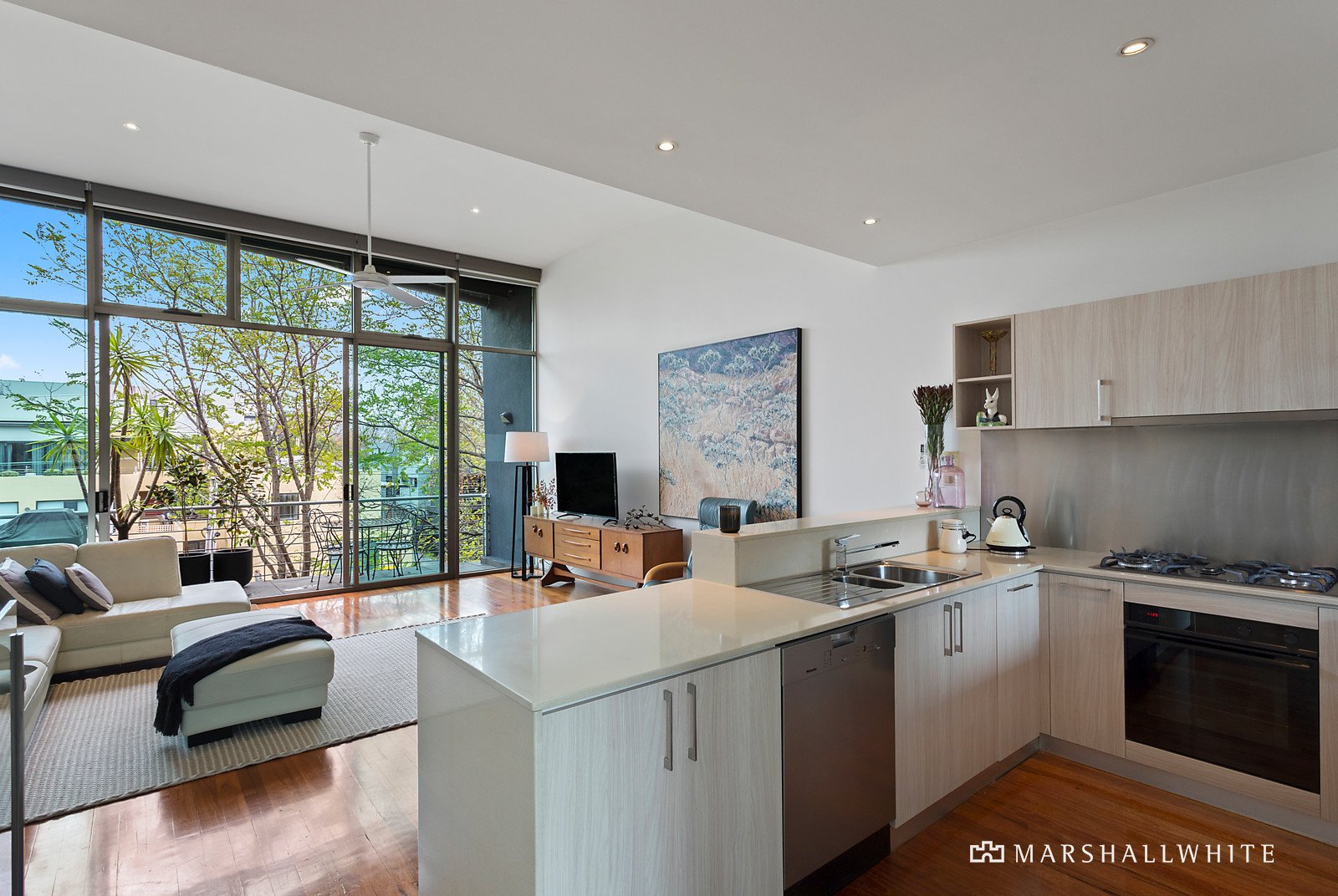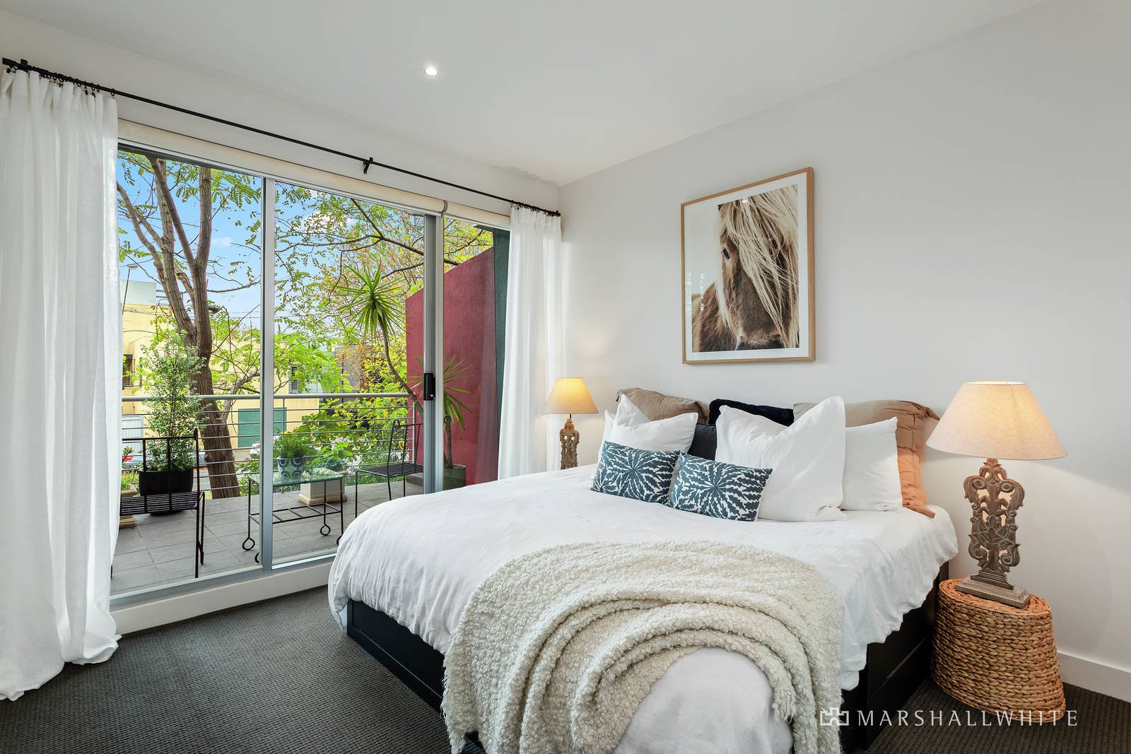 Perfectly positioned at the "Paris end" of leafy Broadway, one of Elwood's premier avenues, this elevated town residence features three bedrooms, two bathrooms and a private double lock-up garage. Captivating soaring ceilings accent the light-filled living zones, while three spacious balconies and a fantastic rooftop terrace inspire seamless indoor-outdoor living. Excellent for entertaining and everyday practicality, the well-appointed kitchen offers plenty of storage at the heart of two separate living/dining zones. An oversized main bedroom comes complete with a marble and travertine ensuite featuring a double shower, while two additional double bedrooms share the central family bathroom, and offer terrace and garden outlooks, delivering great flexibility for a range of lifestyles and stages. This unmatched location is mere seconds from the famous Elwood Patisserie, a short walk to village boutiques, revered cafes and restaurants and iconic Elwood beach. Zoned for Elwood Primary School and Elwood Secondary College, tennis courts, parks and reserves lie close by as well as excellent transport links to the city.