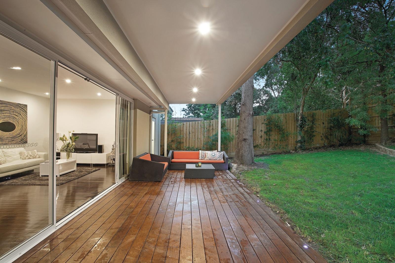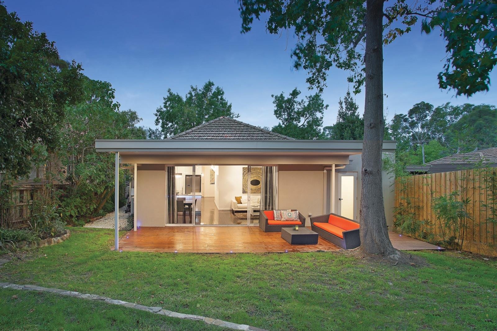 Inviting contemporary style is immediately evidenced by dark timber floors and streamlined finishes through the central hallway, fabulous gourmet kitchen boasting stone benches and European appliances and the generous dimensions of the living and dining room opening out to a broad covered deck and leafy north-facing garden. The evocative main bedroom with en-suite and walk in robes is accompanied by three further bedrooms with built in robes, two of which with window seats opening for storage and modern bathroom.