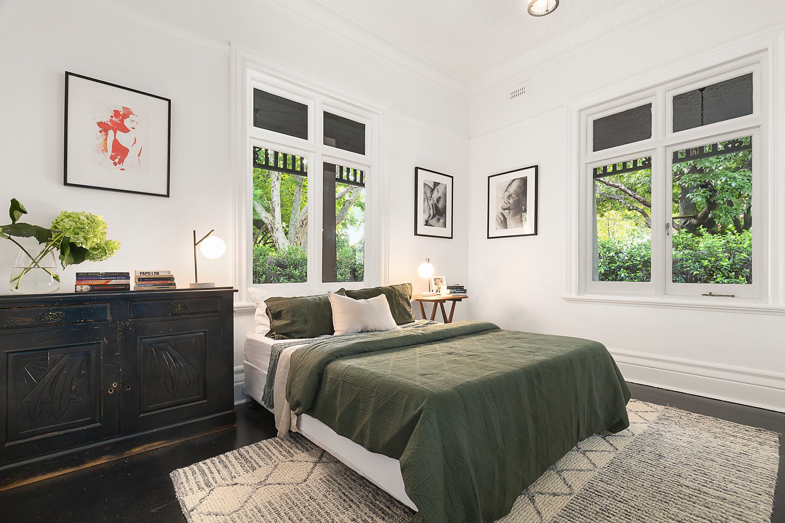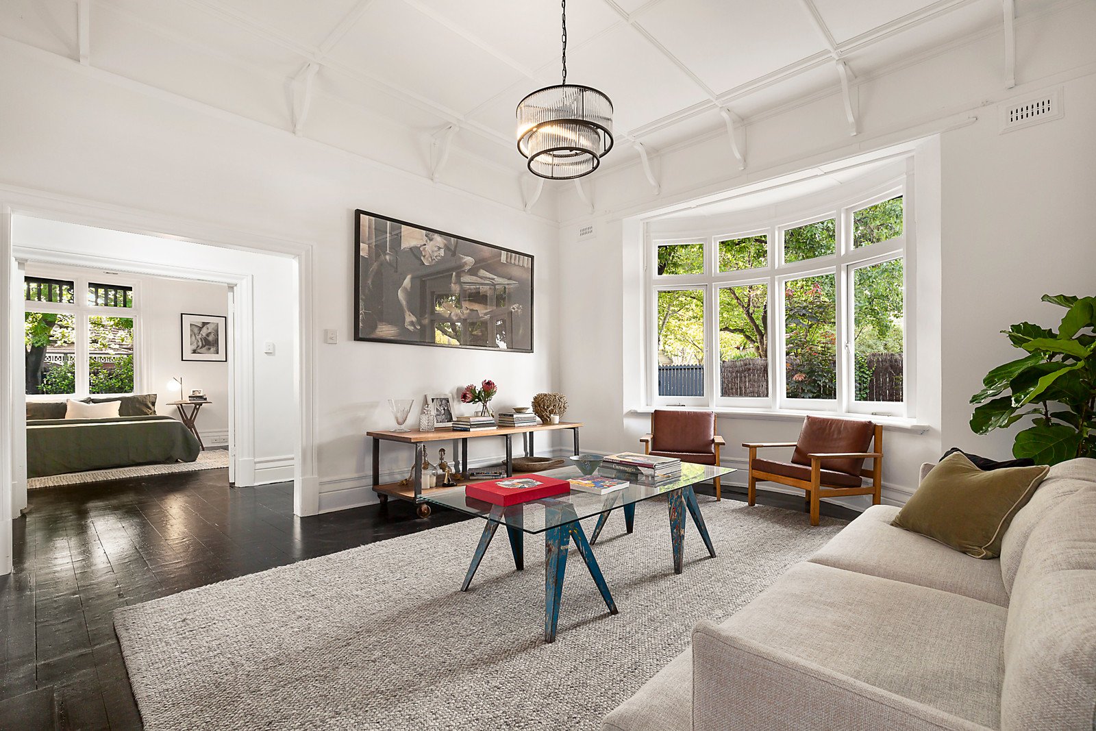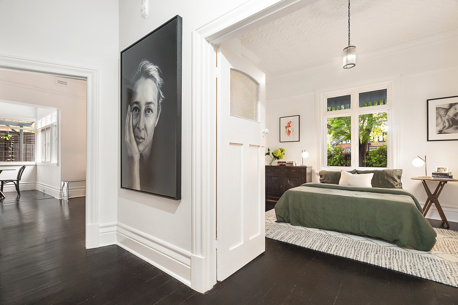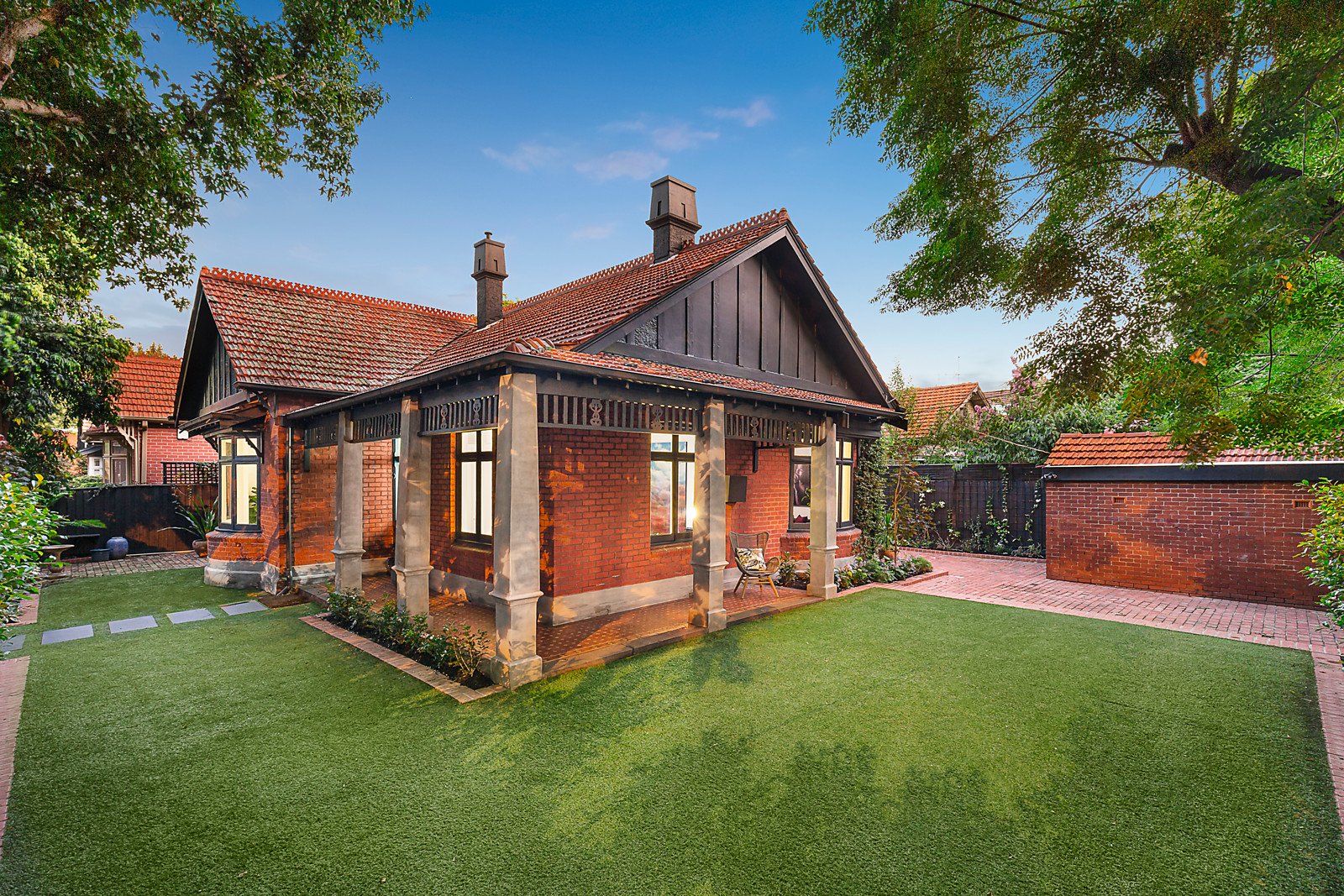 Beautifully renovated Edwardian home offers an exclusive way of living, merging original grandeur with contemporary verve. The location on the corner of two of Elwood's best streets is minutes to cafes, the beach and parks, and you can come home to three living and dining zones, a marble kitchen, four bedrooms and two bathrooms. All the elegance of a grand era remain, with high pressed-metal ceilings, open fireplaces, a return verandah for watching the world go by, and tuckpointed brickwork. Gaze out the bay windows in living areas to tranquil leafy views, love the crisp white interior contrasted with black timber floors, and the single-level practicality for easy living. Every room is planned to perfection. Natural light fills the dining area and luxe kitchen, featuring a Smeg 90cm oven and gas cooktop, the luxury of marble benches and splashback, and pale timber veneer cabinetry. There's a study/fourth bedroom with its own entry, a loft-style kids' bedroom, big roof storage, and scope to add a second storey STCA. Landscaped gardens surround this idyllic home, there's a garage and off-street parking, and the sought-after neighborhood retains its century-old character.