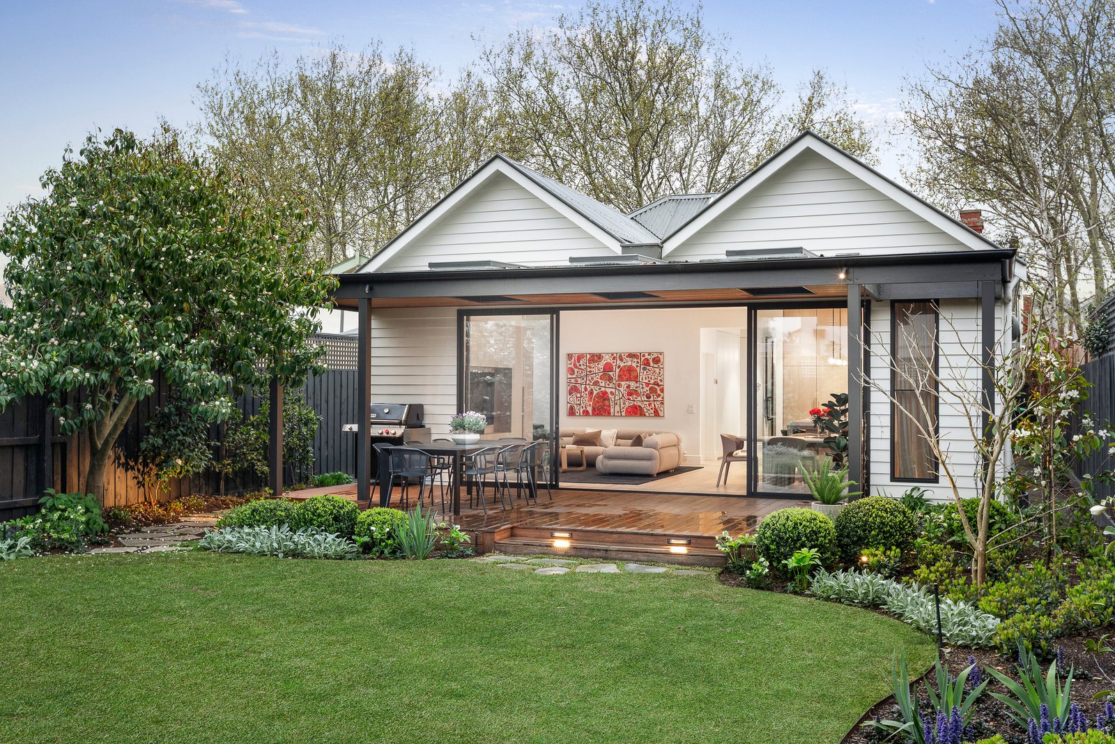 Behind the elegant exterior of this double fronted Edwardian residence, a spectacular renovation has created a breathtaking contemporary domain where inspired designer style is brilliantly balanced with family functionality. Beautifully nestled within picturesque, landscaped garden surrounds, it is a serene family oasis, metres from Ardrie Park.