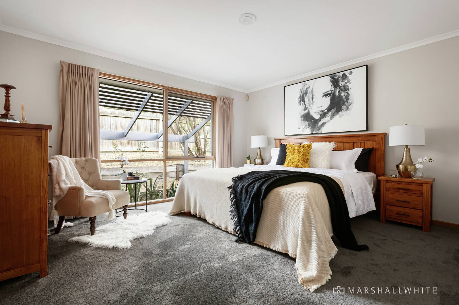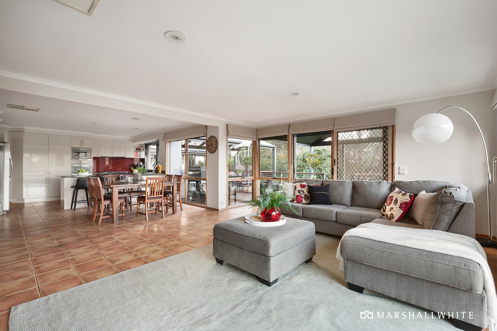 Positioned down a long driveway on a tranquil country lane, the home blends timeless design with modern appeal. It features a formal lounge with wood burning fireplace and high ceilings, a family room that floods with northerly light, and kitchen/casual meals area. Granite benches, abundant storage and attractive garden views make this an enjoyable space for cooking and entertaining.