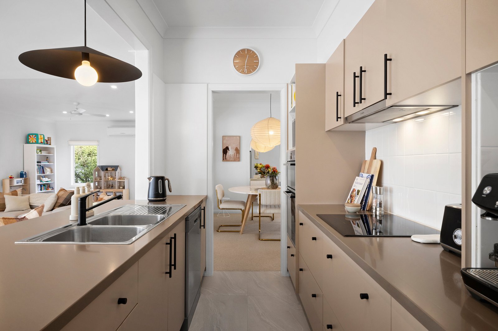 At the heart of the home, a central stone kitchen with Bosch induction cooktop and double oven connects seamlessly with the lavishly glazed family living and meals area. Re-surfaced hardwood floors flow to sliding glass doors that open onto a broad timber deck with undercover alfresco entertaining. Elevated above lush landscaped gardens, the deck overlooks a fenced veggie patch and chook pen.